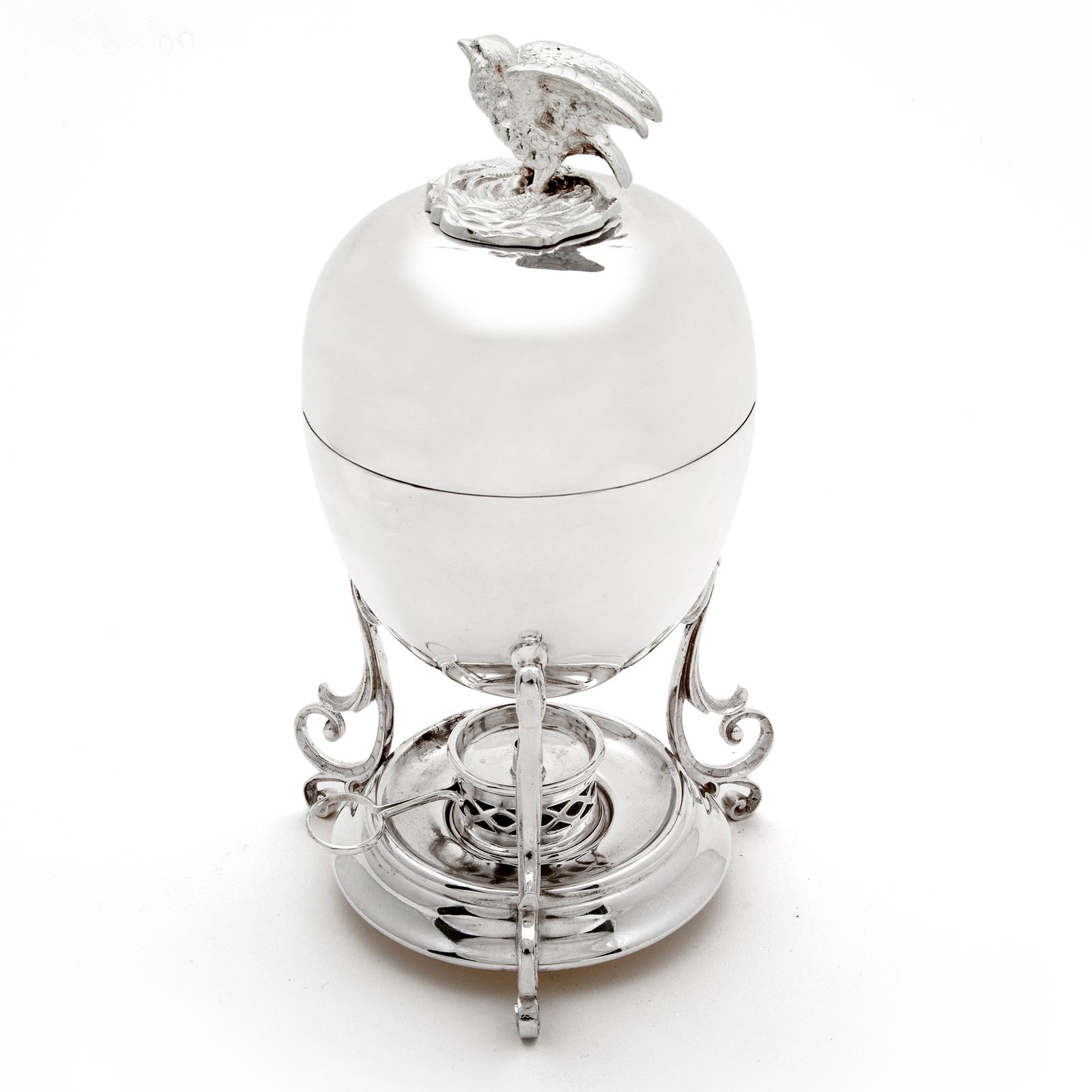 Victorian Silver Plated Egg Boiler with Chicken Shaped Finial
