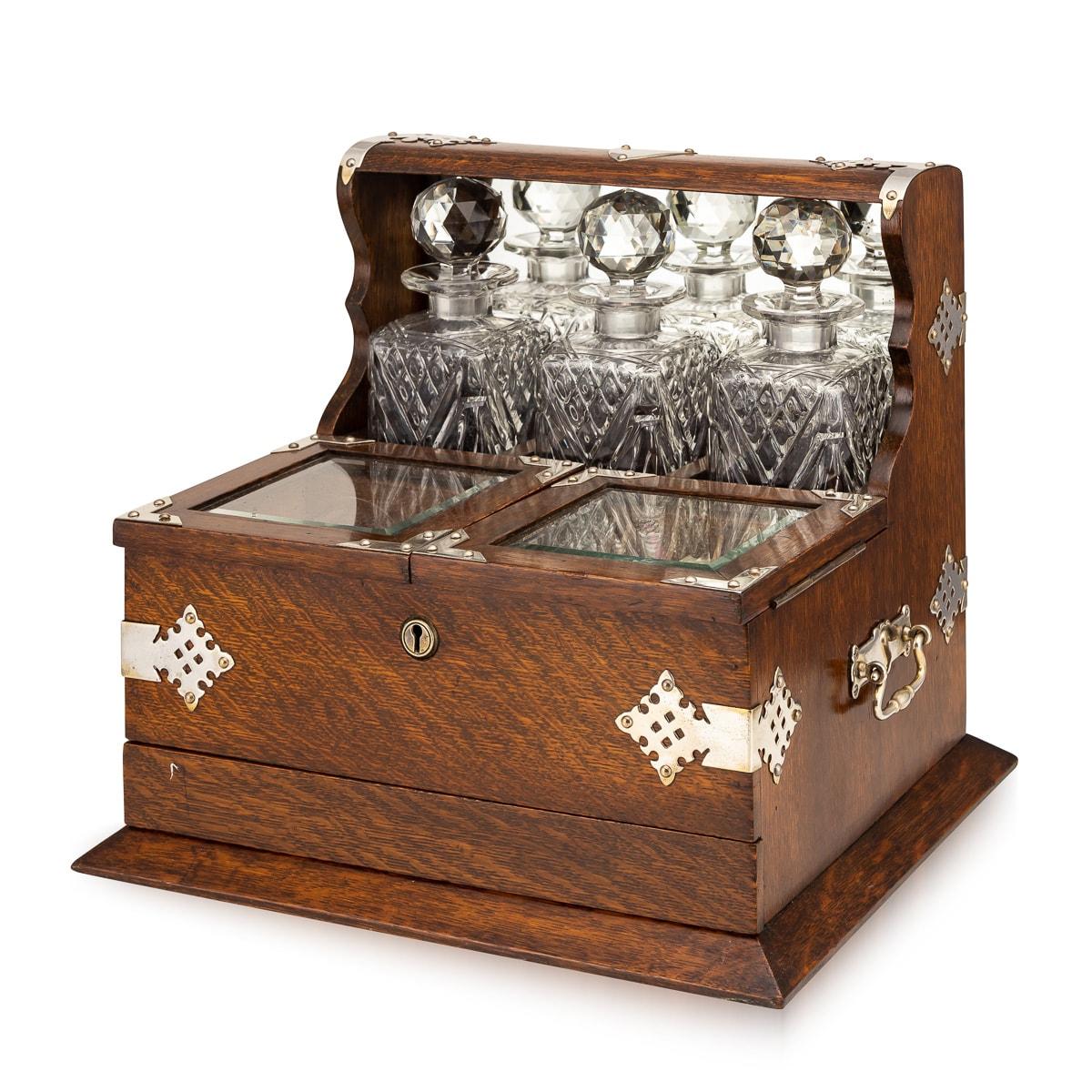 Victorian Silver Plated & Oak Tantalus & Games Compendium c.1895