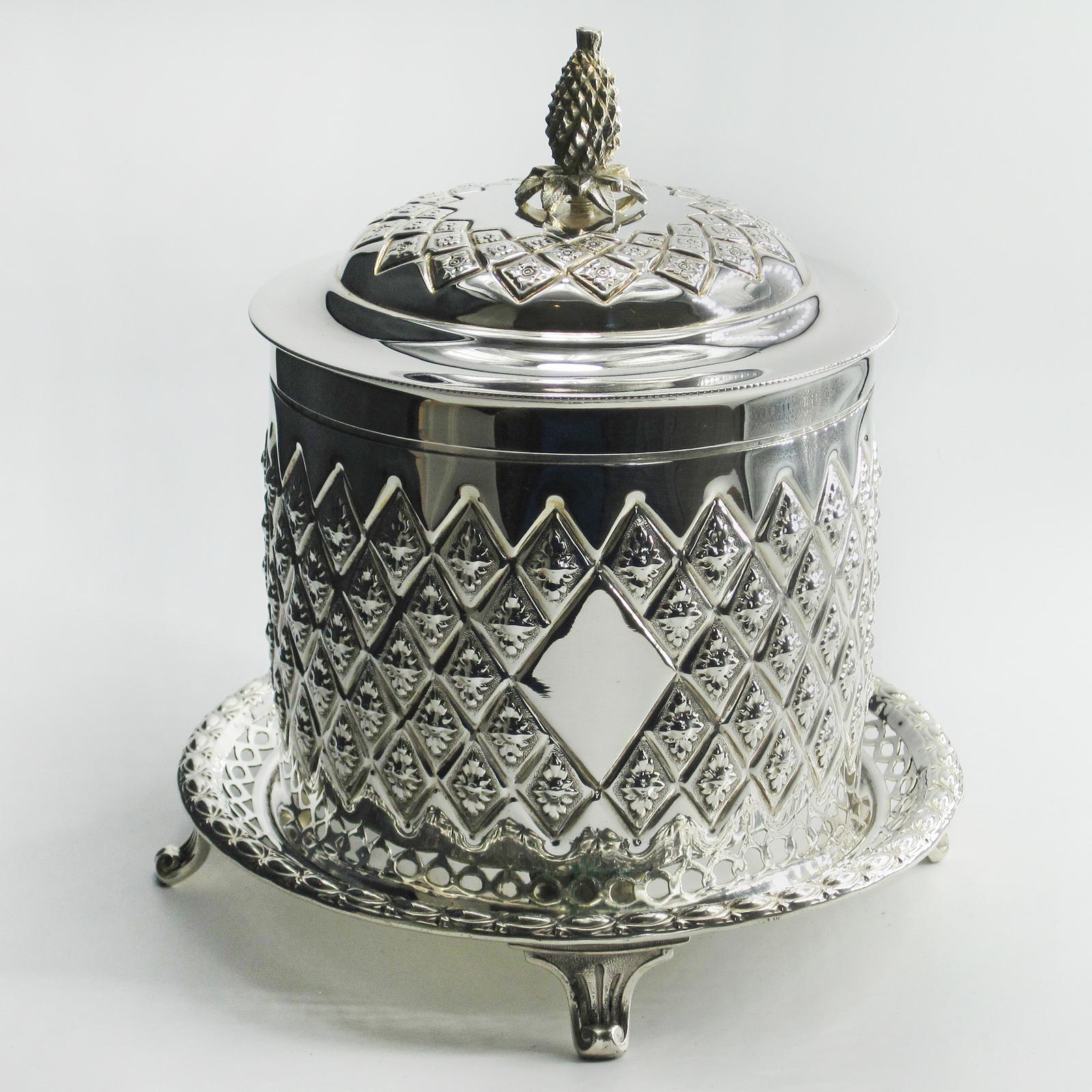 Victorian Silver Plated Pineapple Pattern Biscuit or Trinket Box