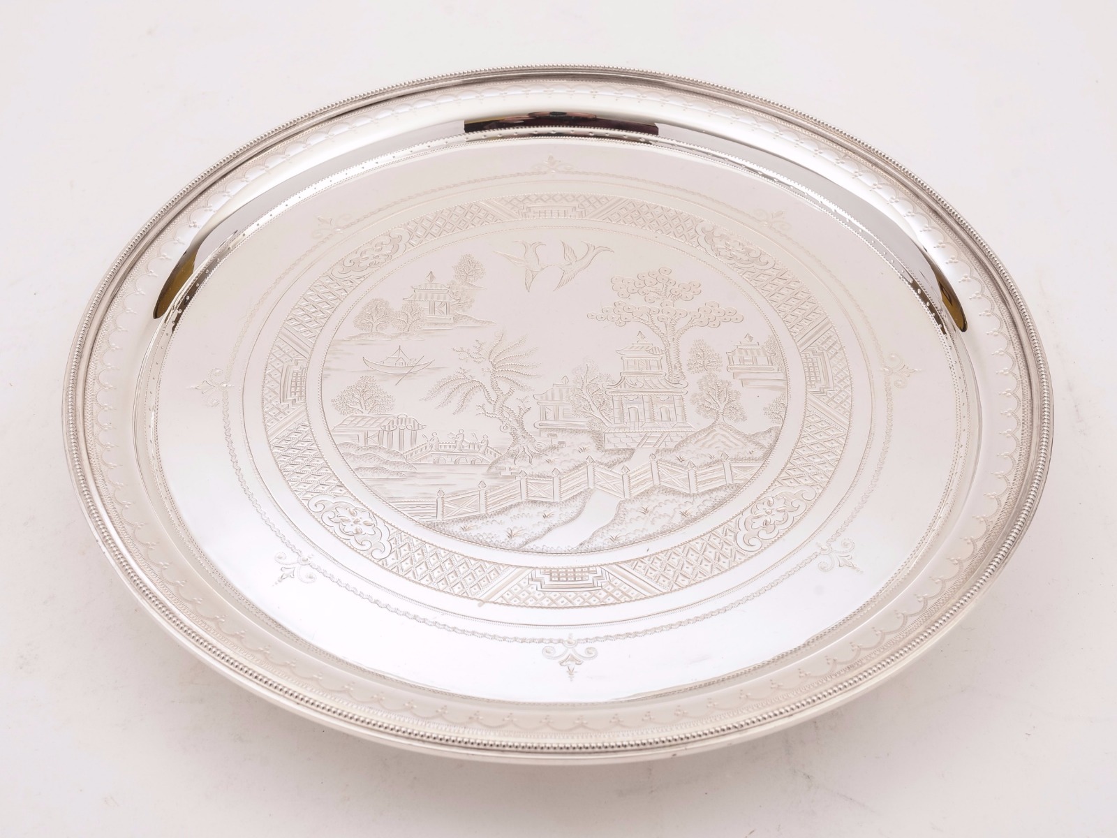 Victorian Silver Plated Salver in Chinoiserie Style