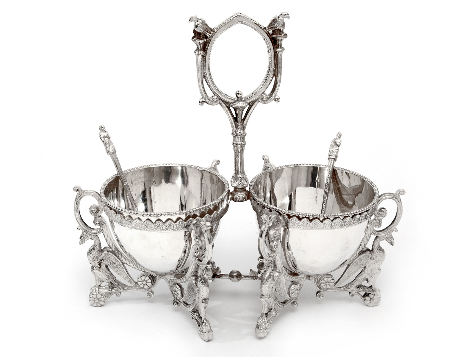 Victorian Silver Plated Sugar & Cream Stand with a Sugar Sifter & Cream Ladle