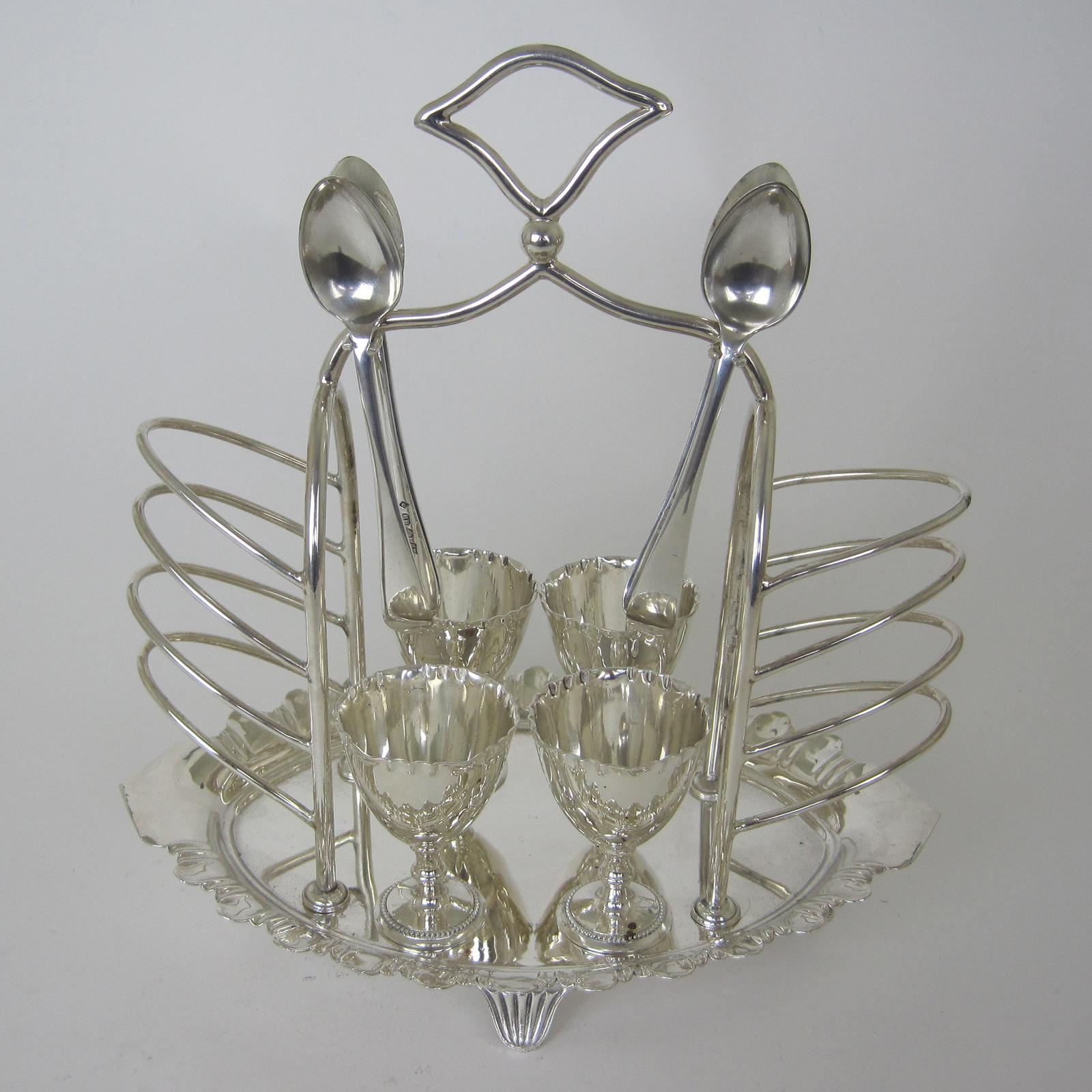 Victorian Silver Plated Toast Rack and Egg Cruet