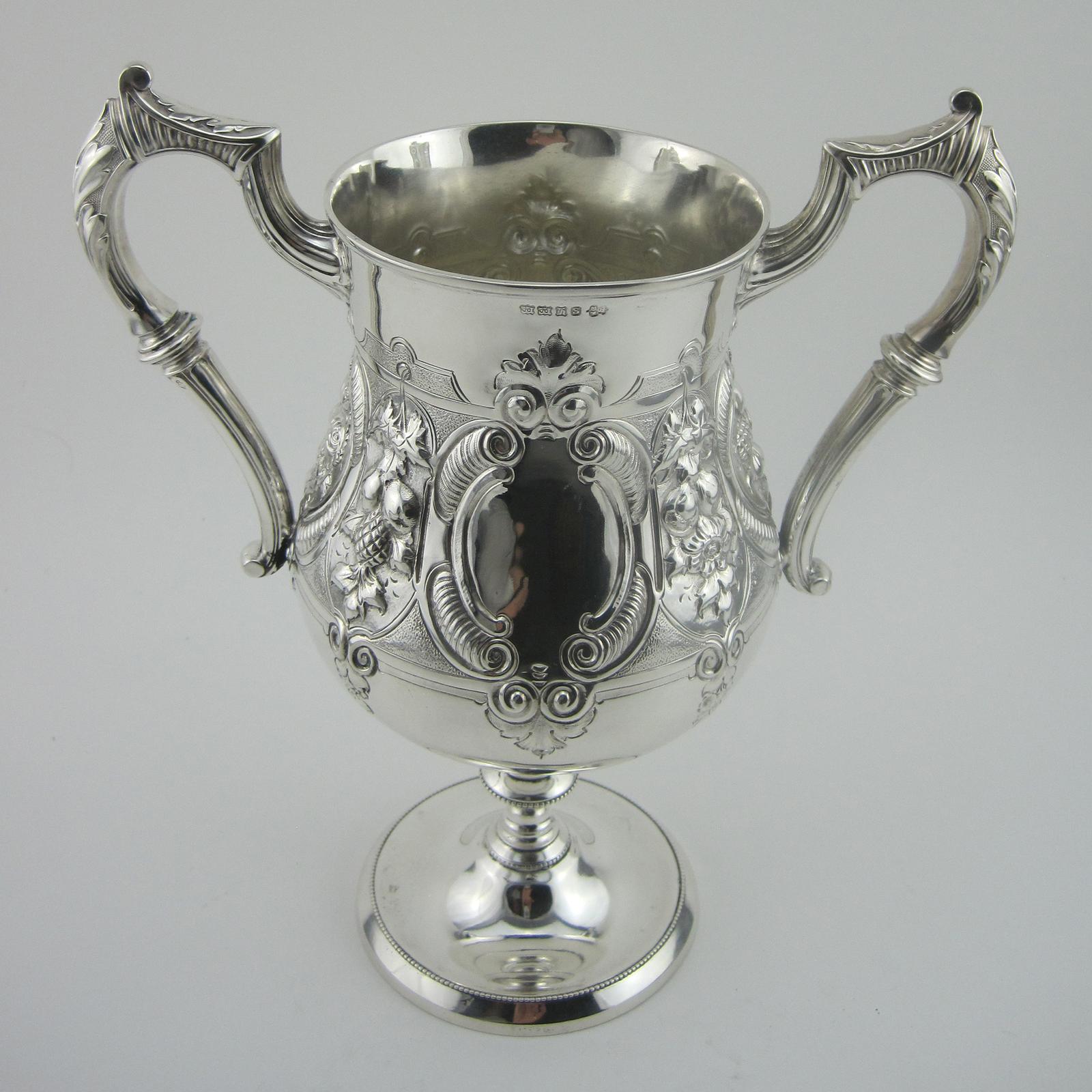 Victorian Silver Plated Trophy Cup with Two Leaf Scroll Handles
