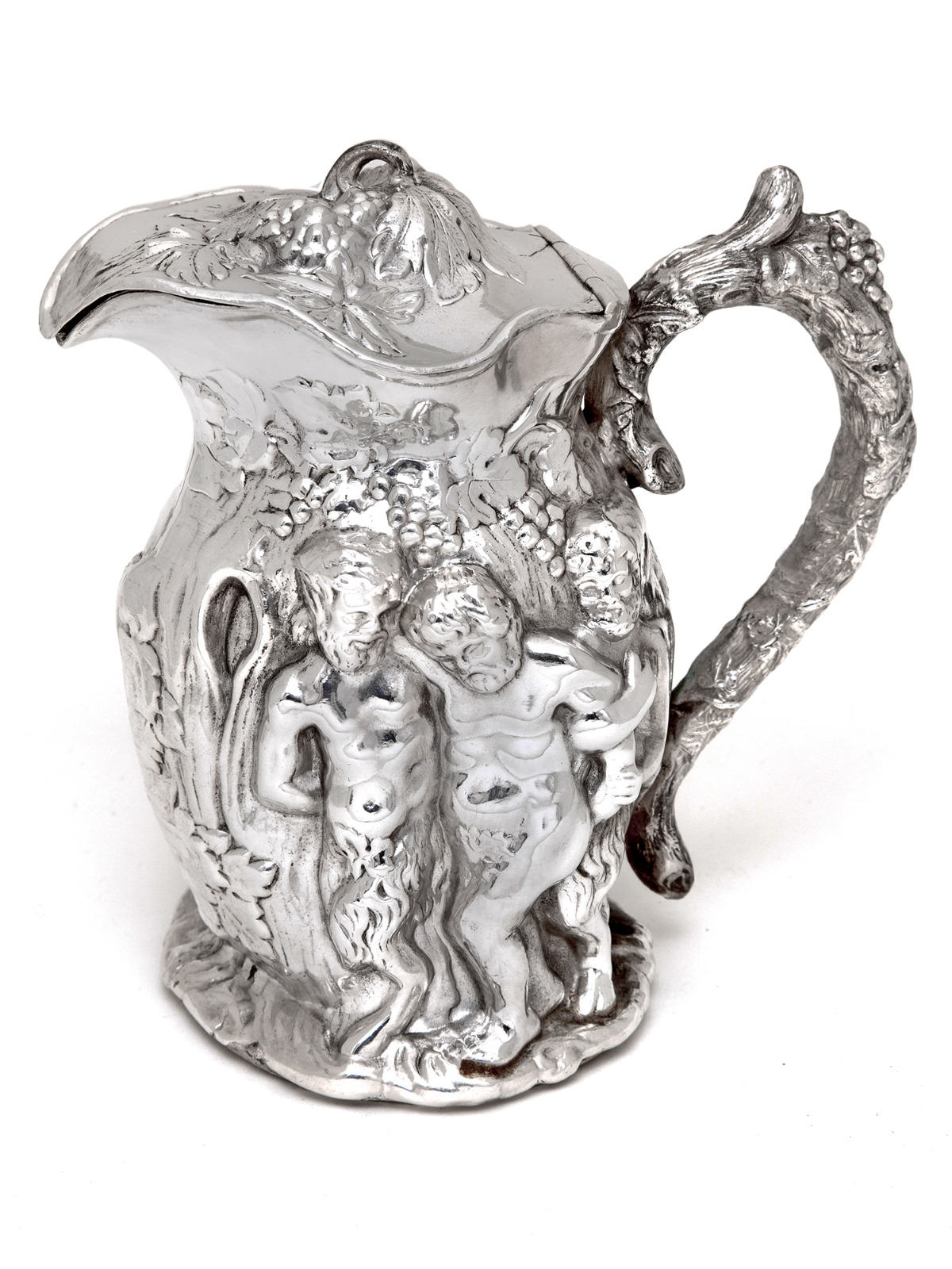 Victorian Silver Plated Wine Jug Embossed with Cherubs at a Grape Harvest