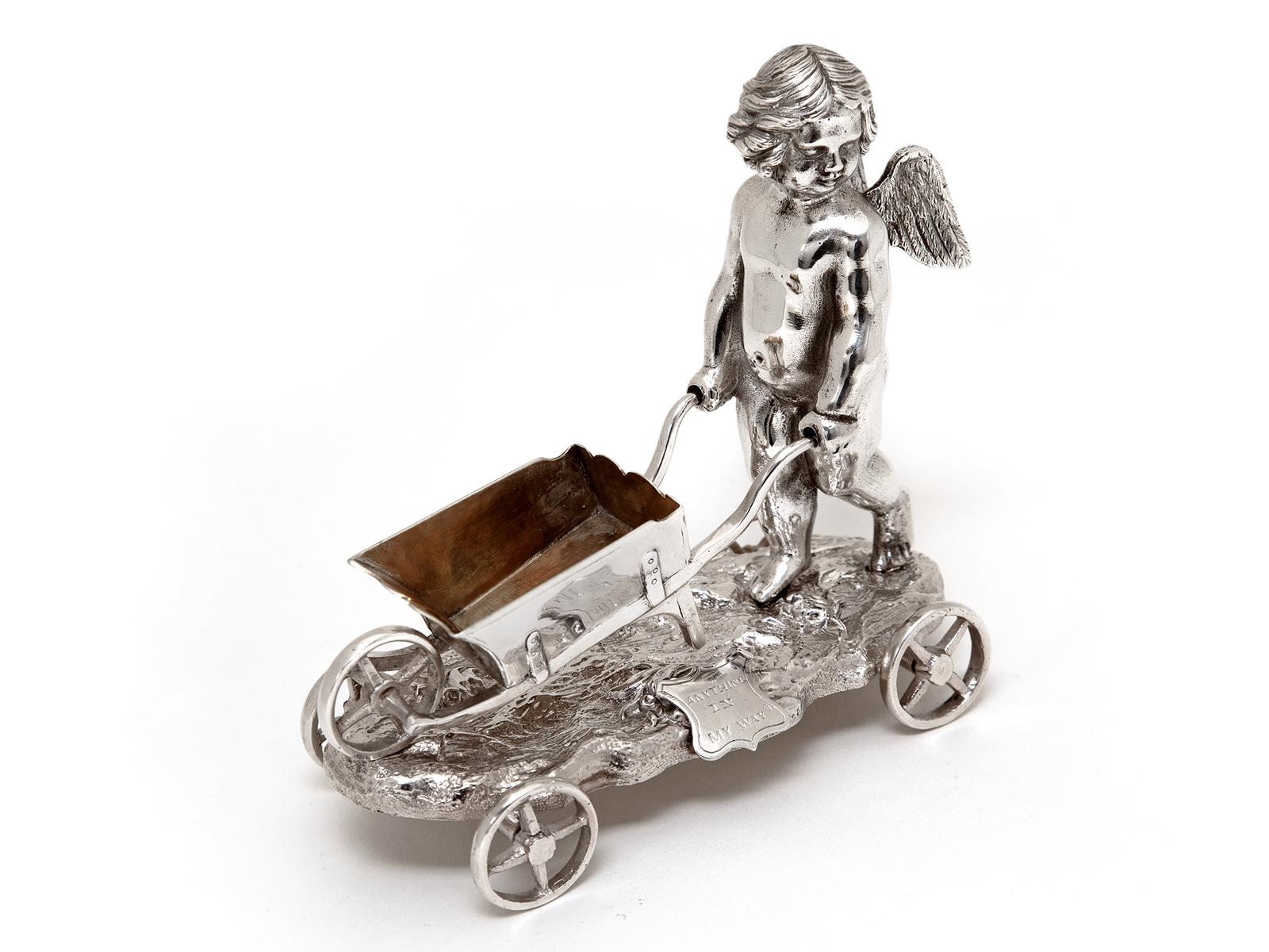 Victorian Silver Plated Winged Cherub Pushing a Wheelbarrow Salt (1 of 5)