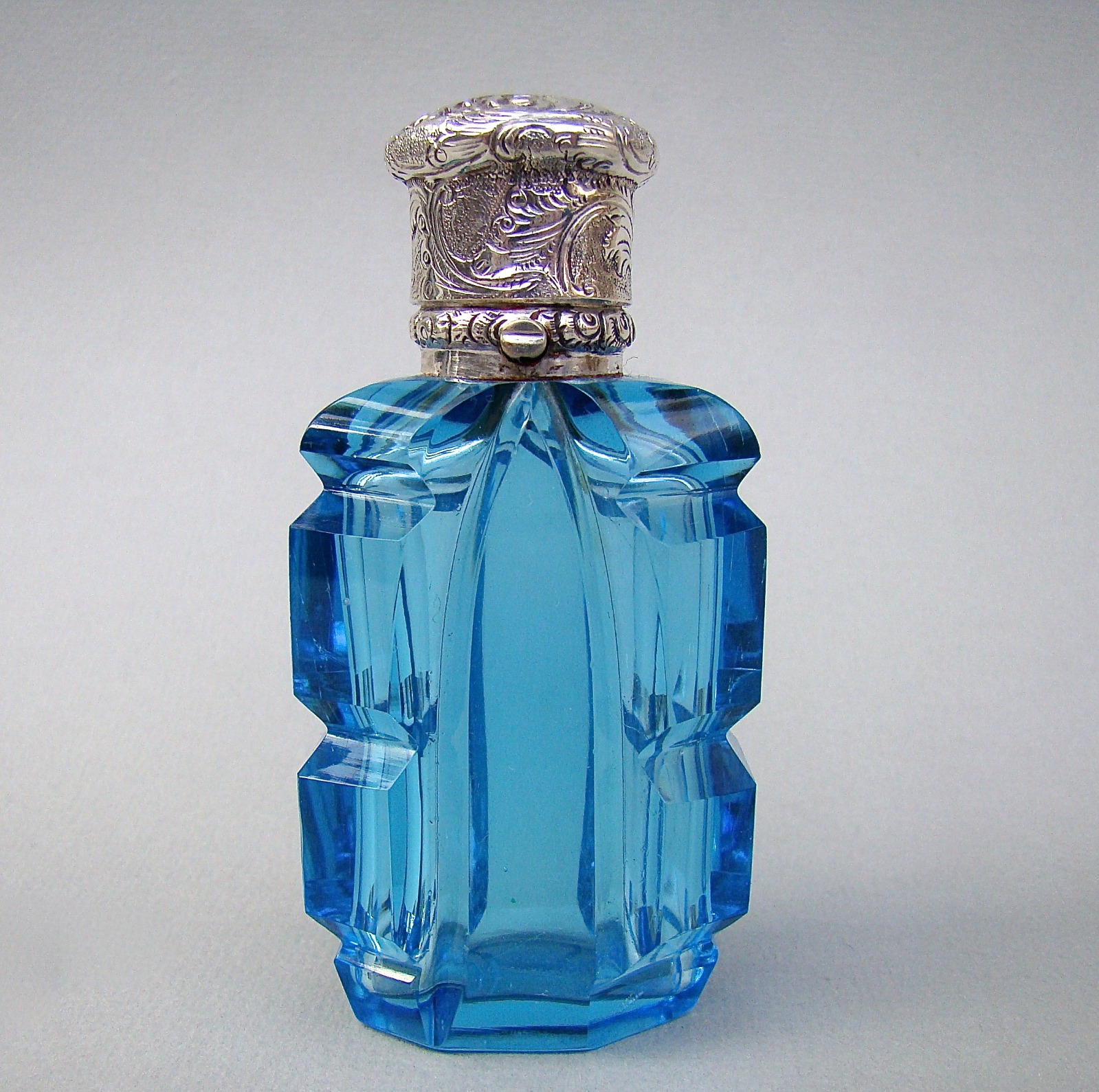 Victorian Silver & Turquoise Glass Scent Bottle c.1870