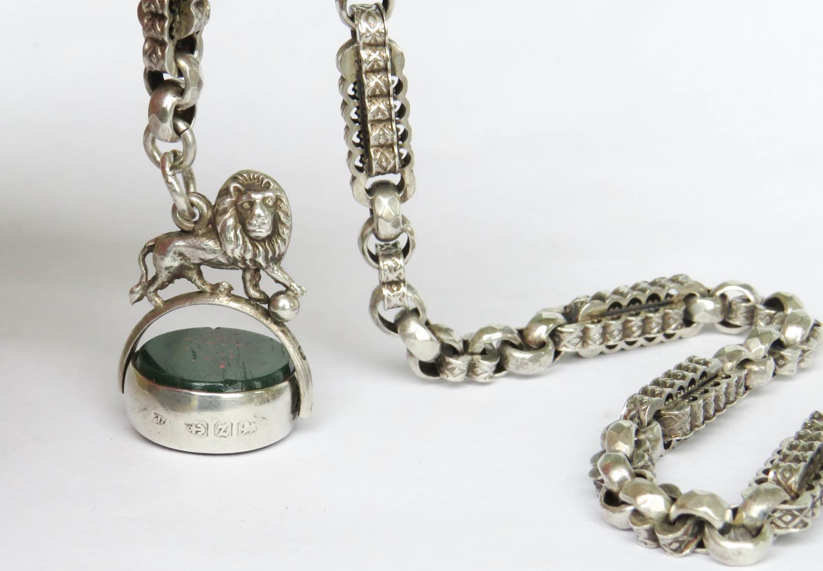 Victorian Silver Watch Chain & Lion Swivel Fob