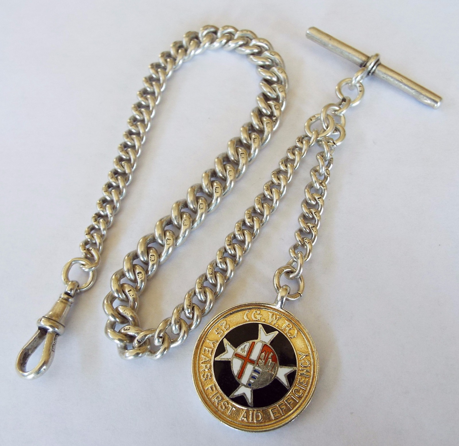 Victorian Silver Watch Chain & Silver Gwr Fob