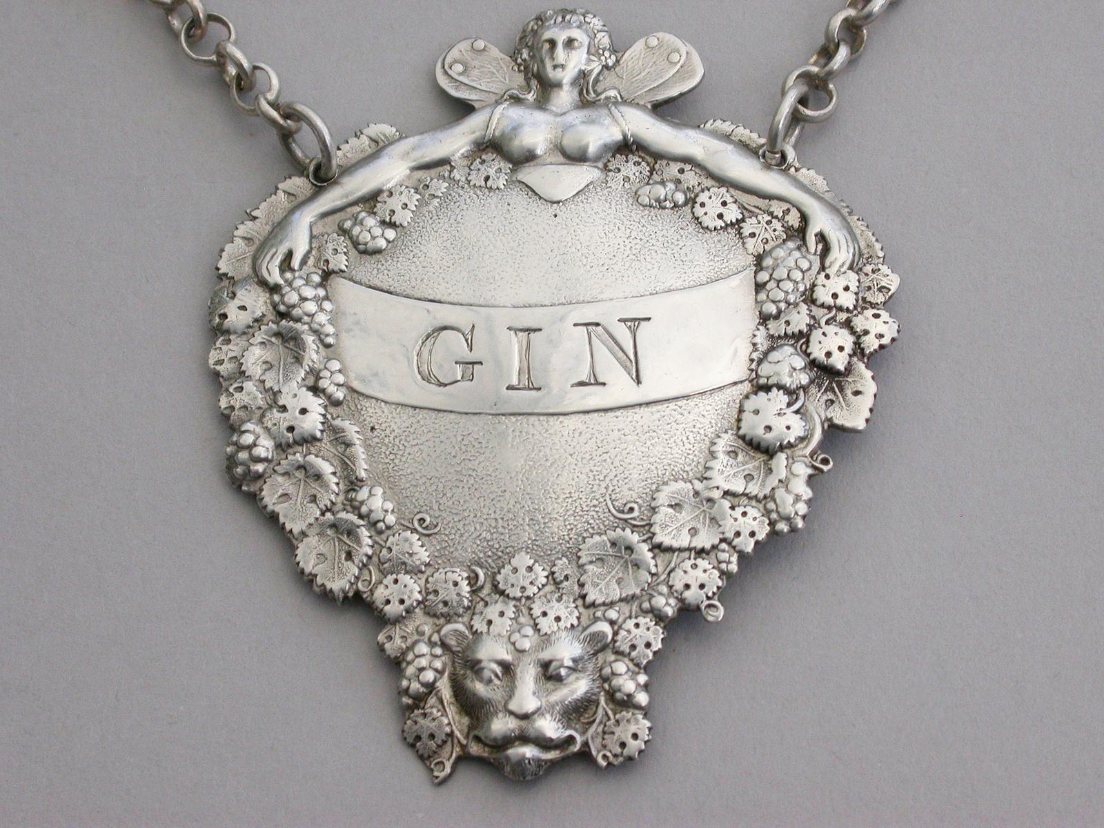 Victorian Silver Wine Label Gin "Lady Bountiful" by Joseph Angell, London, 1850
