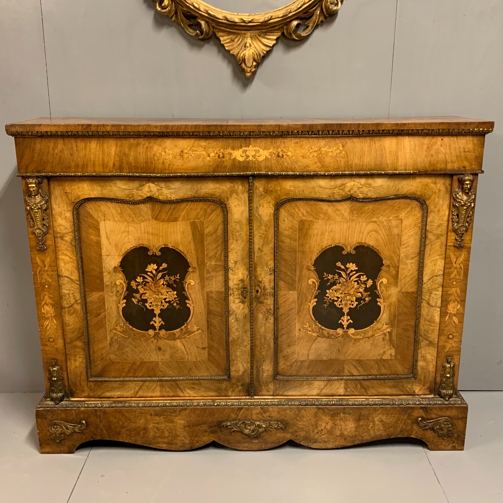 Victorian Slim Burr Walnut & Marquetry Pier Cabinet