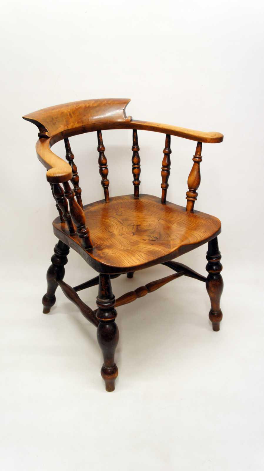 Victorian Smokers Bow or Captains Chair, Elm / Beech - Large Seat, Wide Arms
