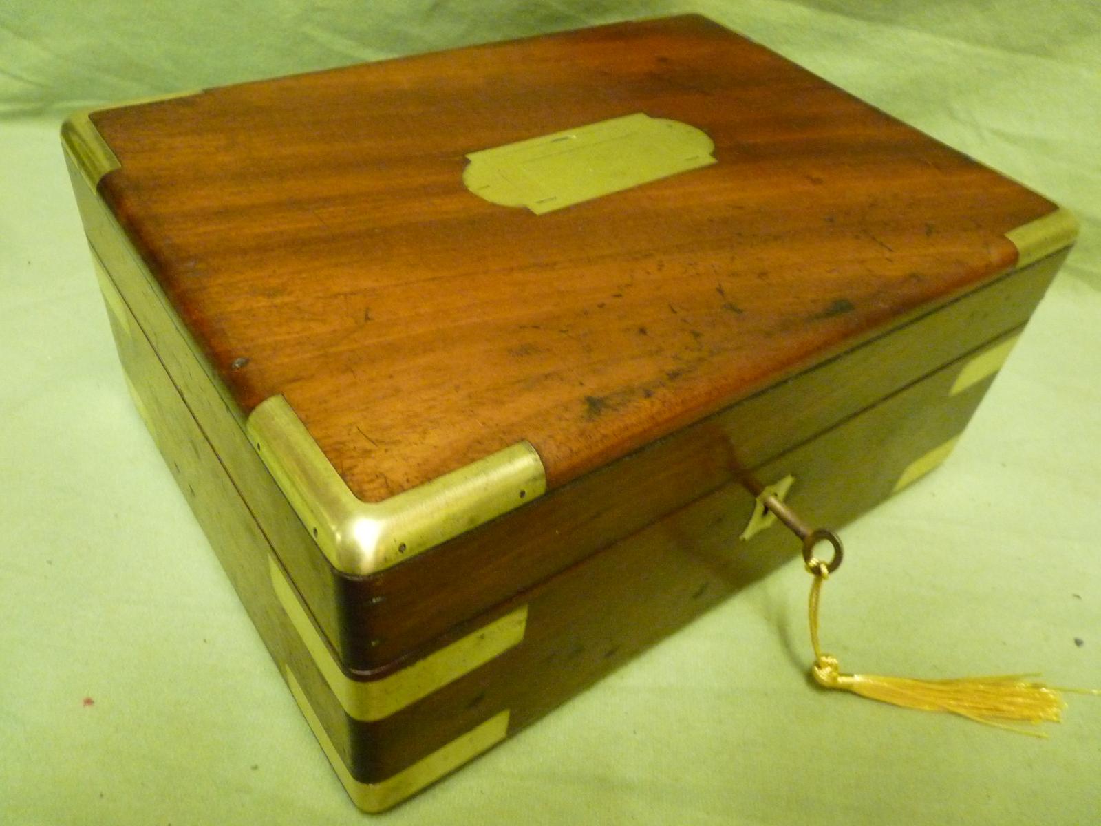 Victorian Solid Mahogany Brass Bound Unisex Jewellery Box c.1850