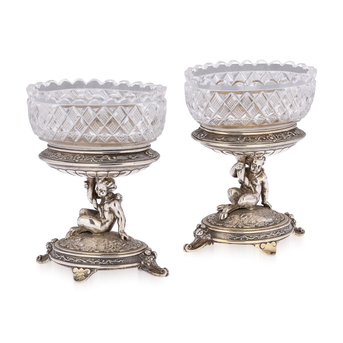 Victorian Solid Silver & Glass Figural Salts - Elkington 1896