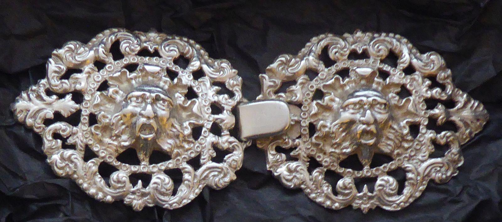 Victorian Solid Silver Nurses Cape Buckle Clasp Green Man Design 47g