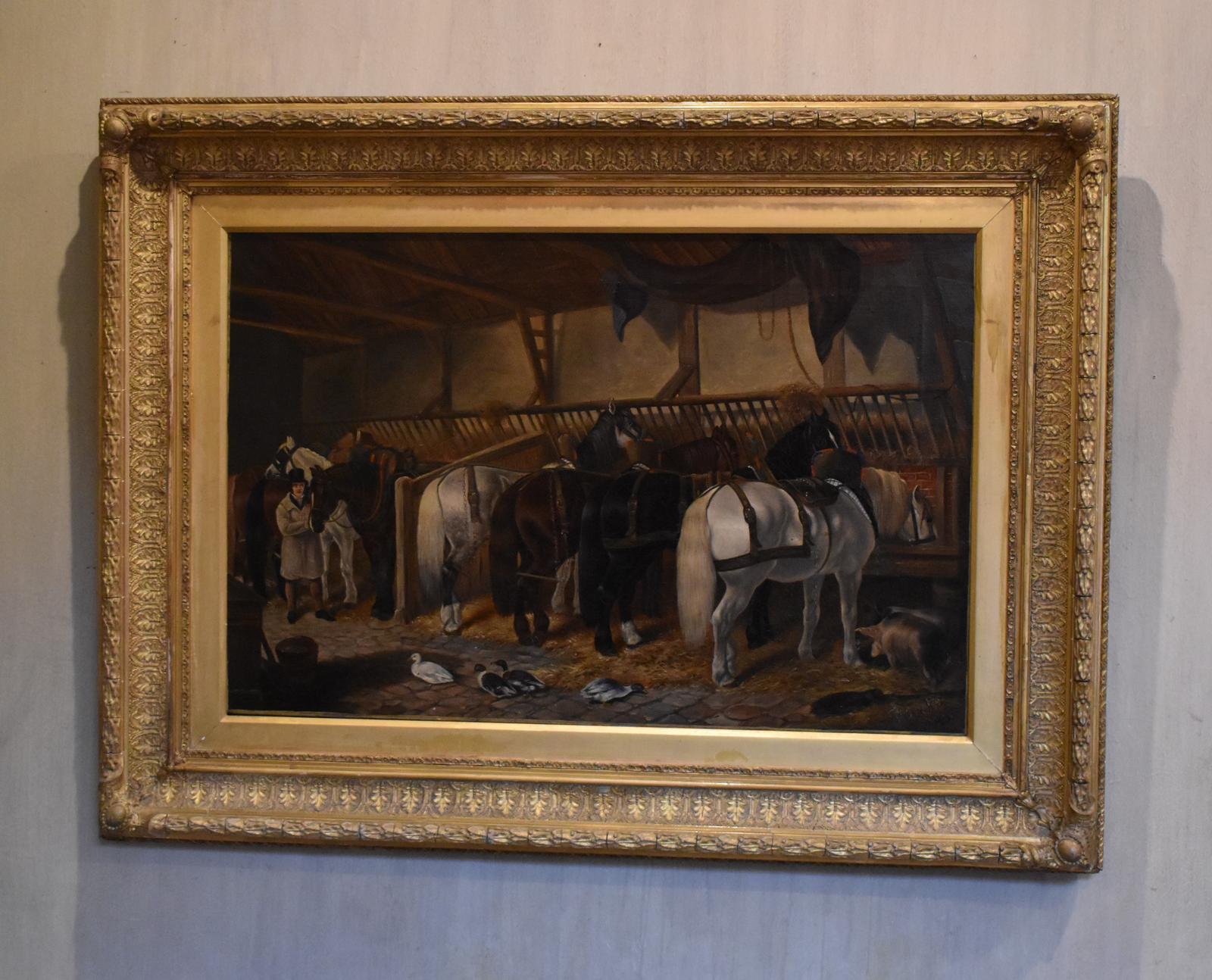 Victorian Stable Interior Oil Painting