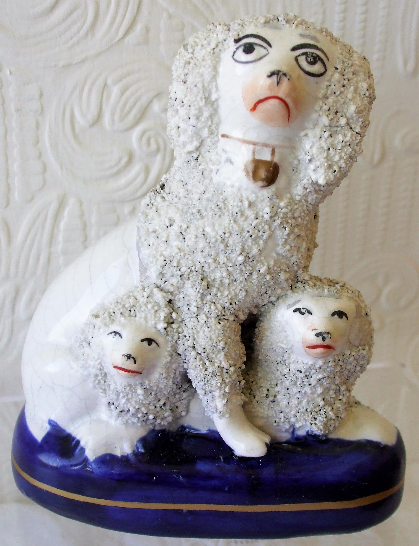 Victorian Staffordshire Pottery Figure Group ~ "Poodles"