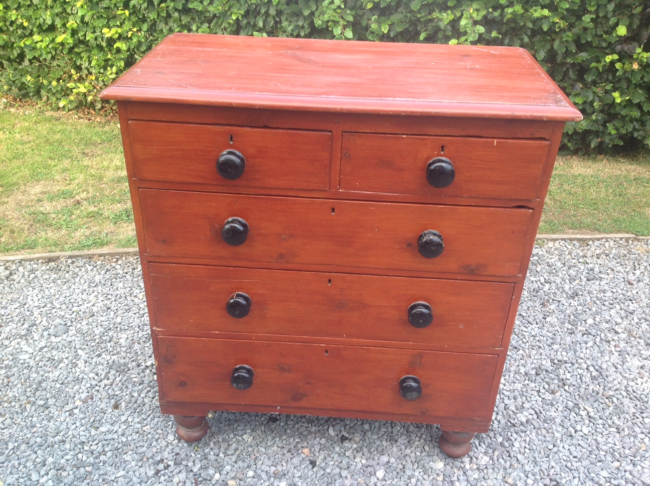 Victorian Stained Pine Tall Chest of 2 Short & 3 Long Graduated Drawers