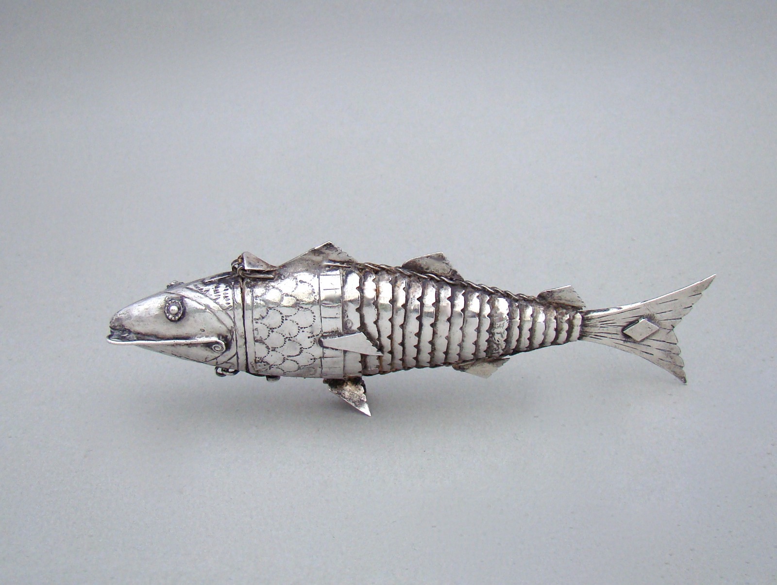 Victorian Sterling Silver Articulated Fish Spice Box c.1880