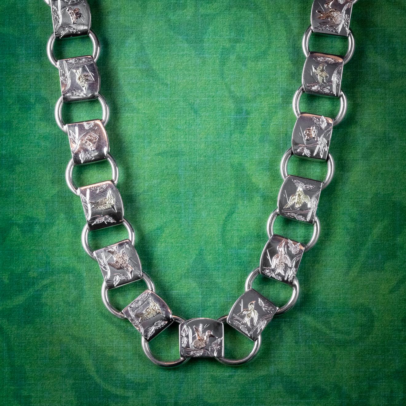 Victorian Sterling Silver Collar Necklace Gold Birds Circa 1880