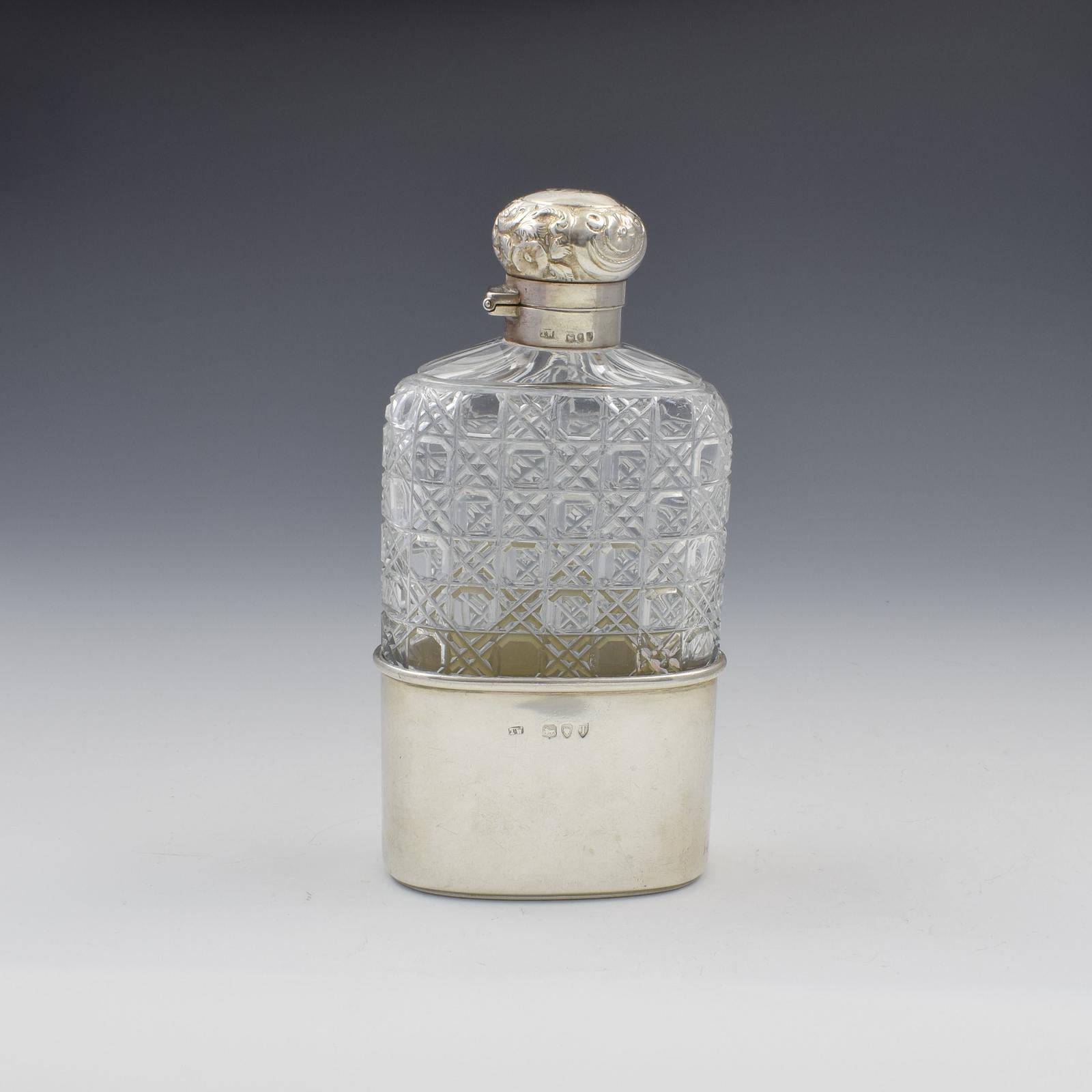 Victorian Sterling Silver & Cut Glass Spirit Hip Flask