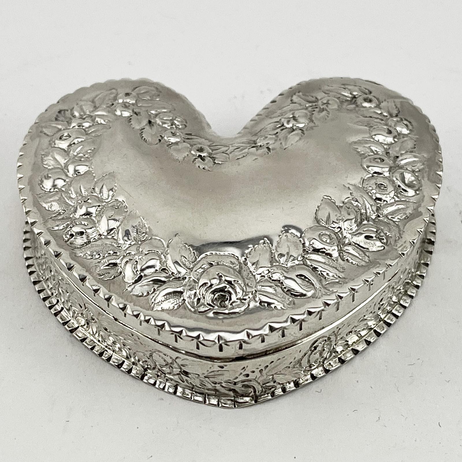 Victorian Sterling Silver Heart Shaped Jewellery Box