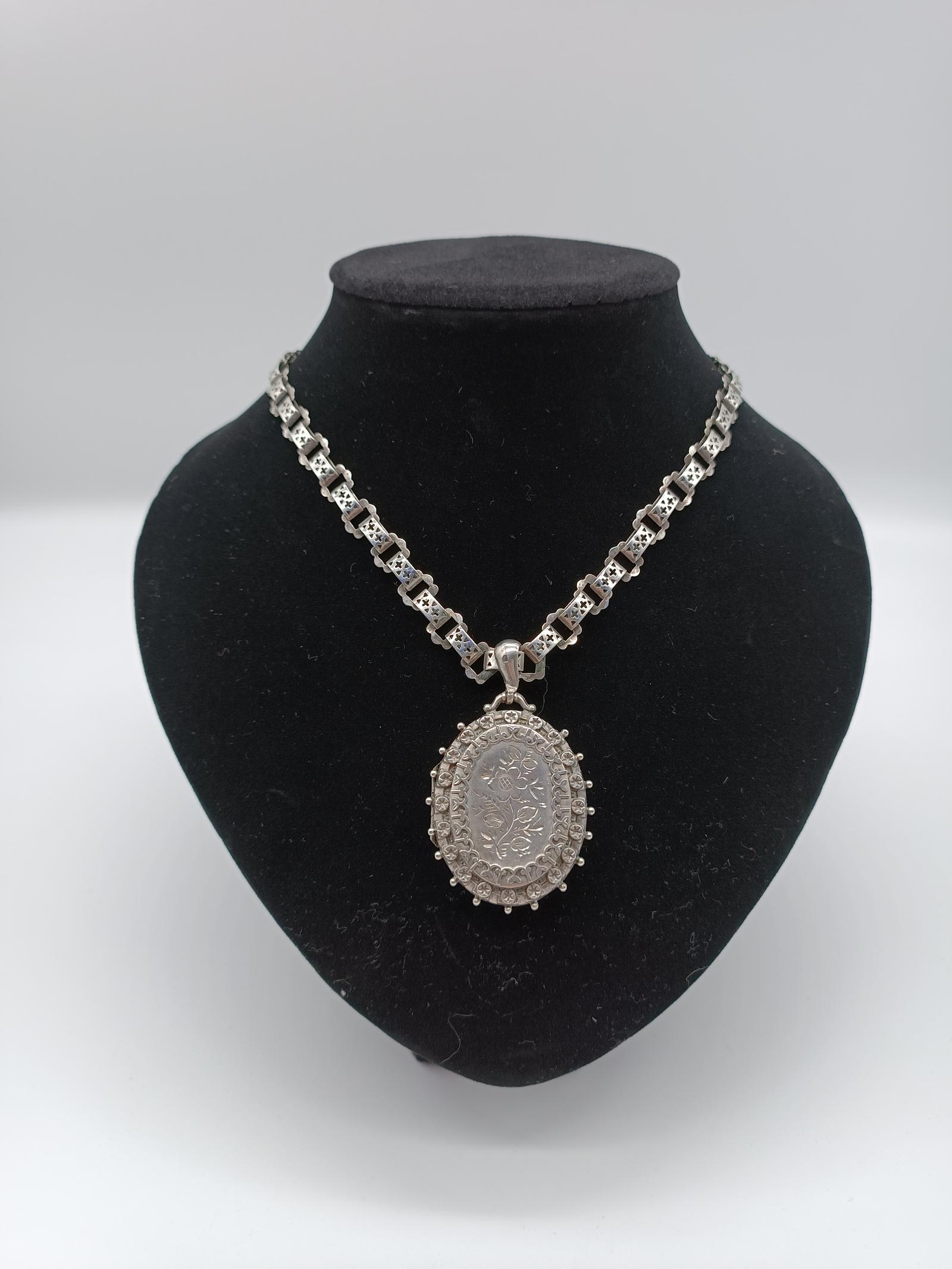 Victorian Sterling Silver Locket And Choker Chain Collar Birmingham 1886