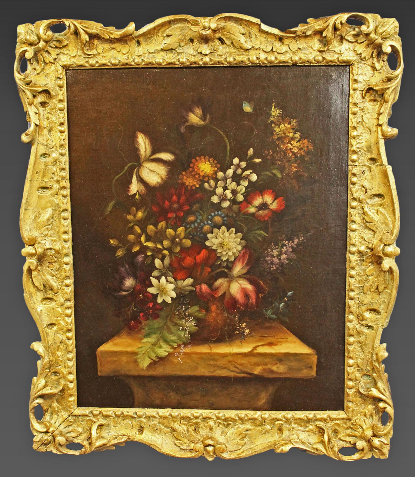 Victorian Still Life Painting of Flowers - Oil on Canvas