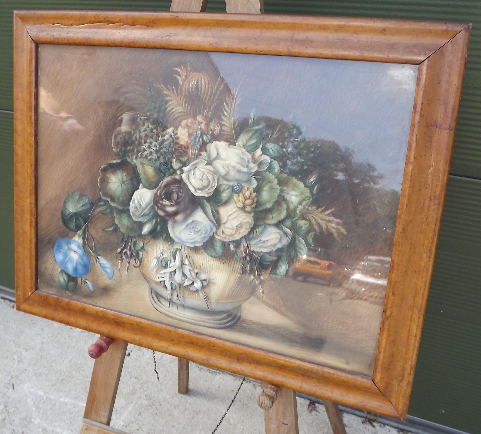 Victorian Still Life Watercolour Painting in a Bird's Eye Maple Frame