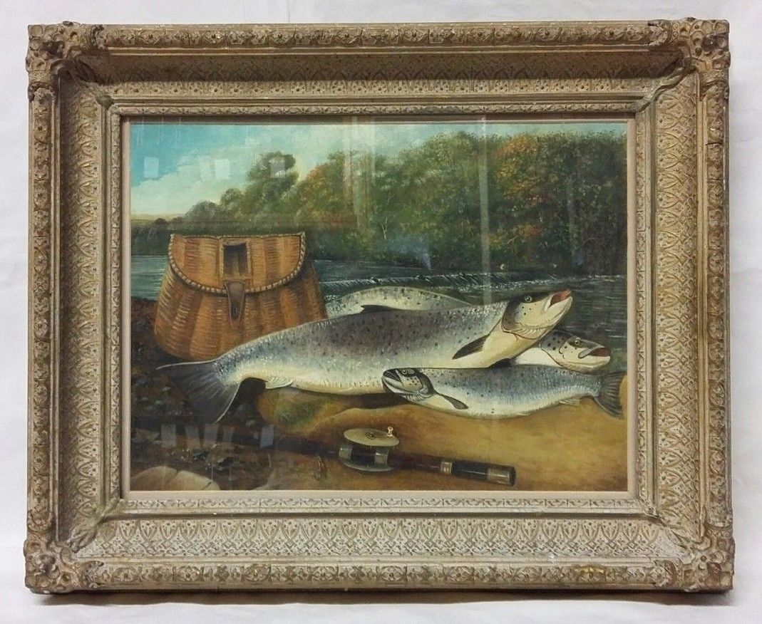 Victorian 'Study of Salmon' Oil on Board Painting in the Style of John Russell