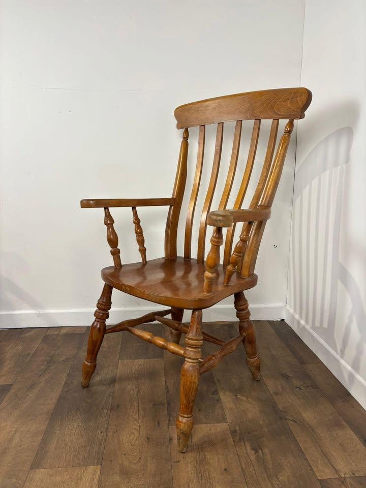A charming Victorian-style beech farmhouse kitchen chair, displaying a pleasing, well-balanced form and excellent craftsmanship. Solidly constructed and reassuringly sturdy, this chair has the honest presence and durability associated with traditional country furniture.