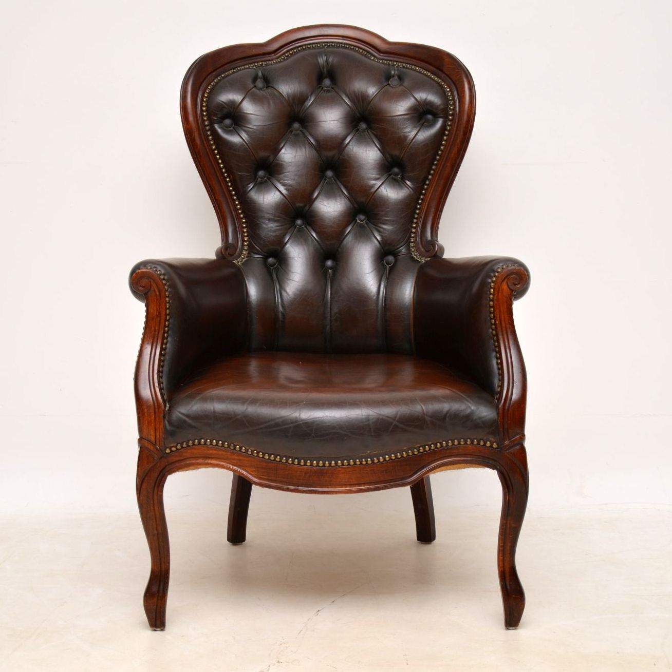 Victorian Style Leather & Mahogany Armchair c.1950