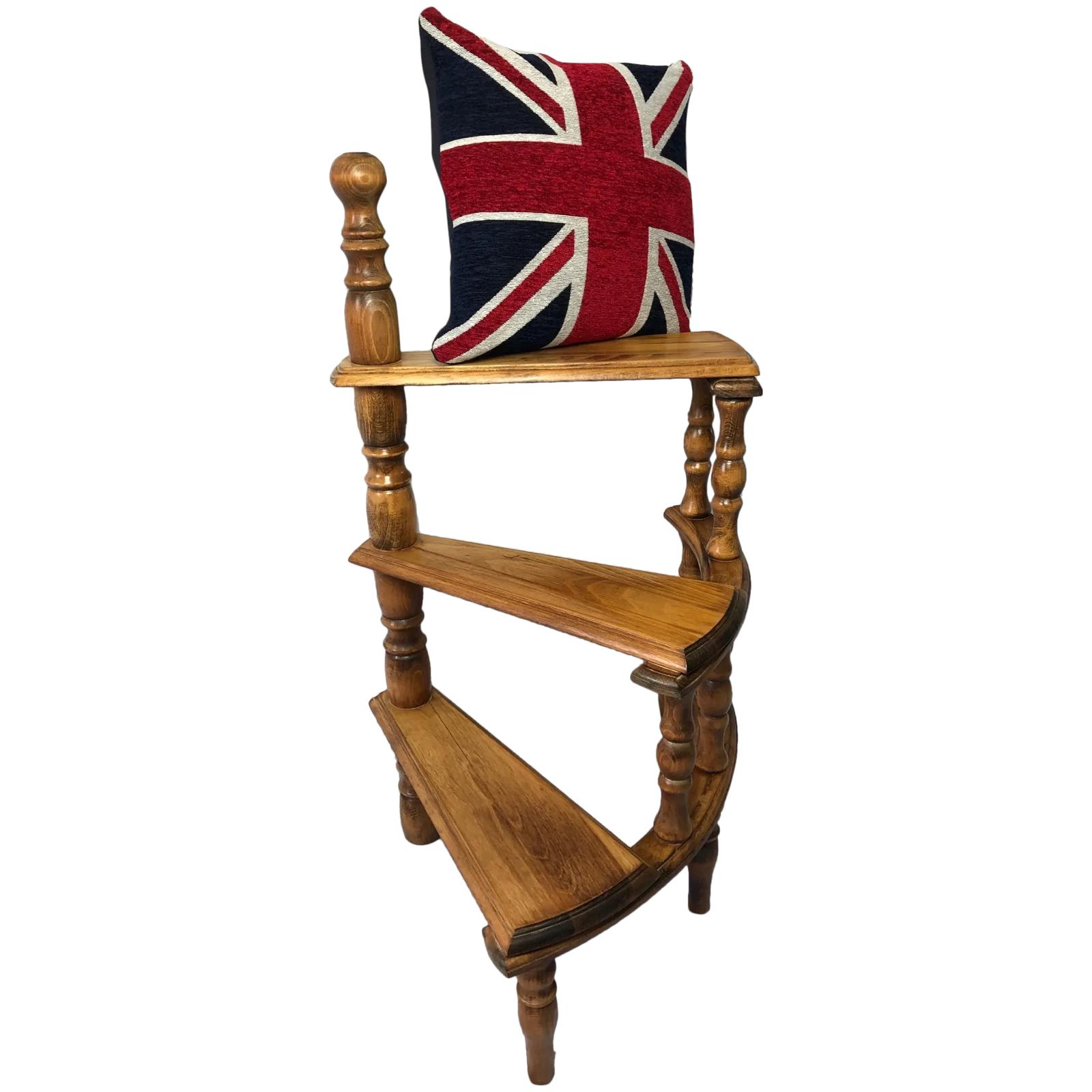 Victorian Style Light Oak Library Spiral Curved Step Ladder Stand