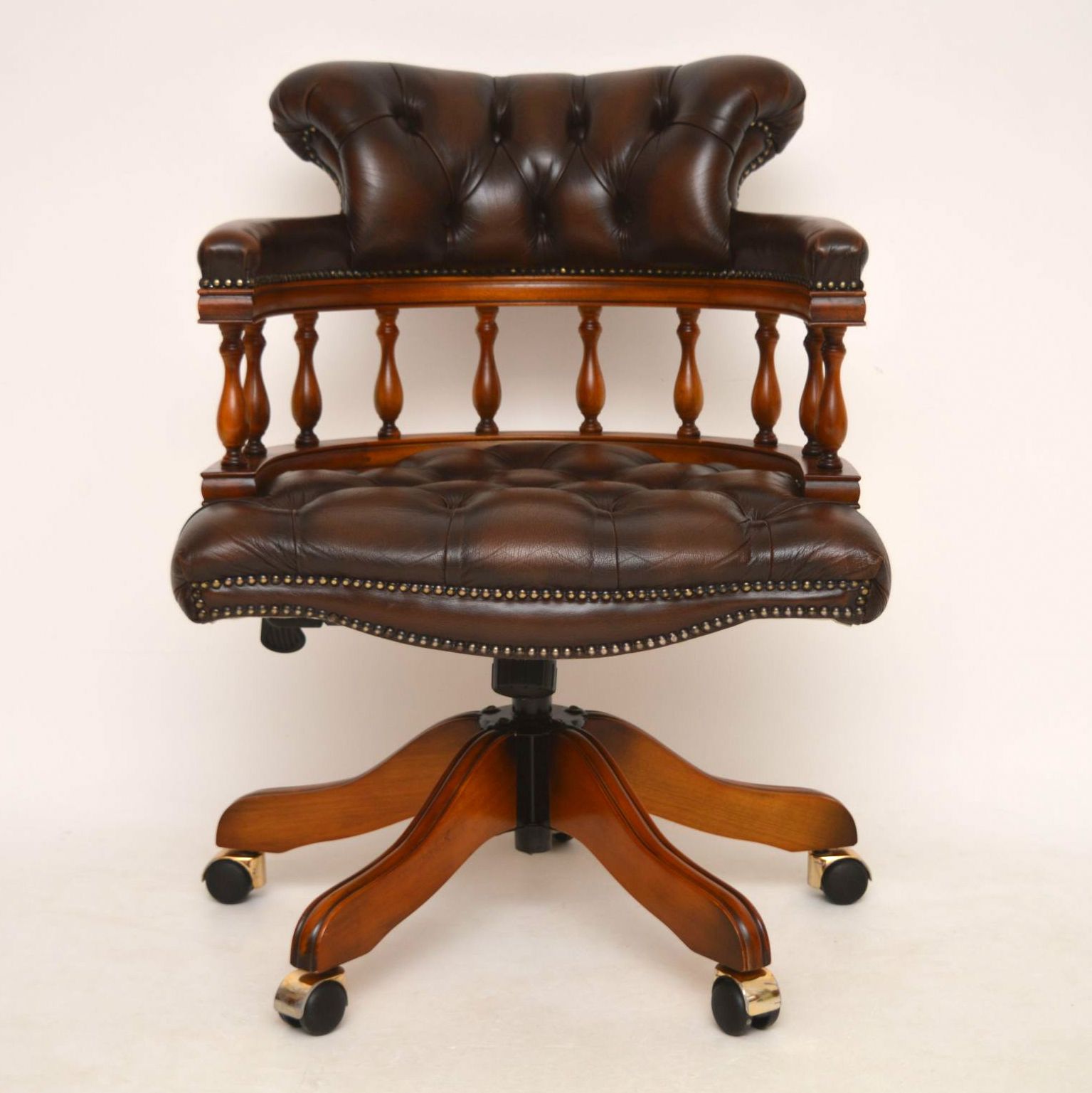 Victorian Style Mahogany & Leather Captains Desk Chair