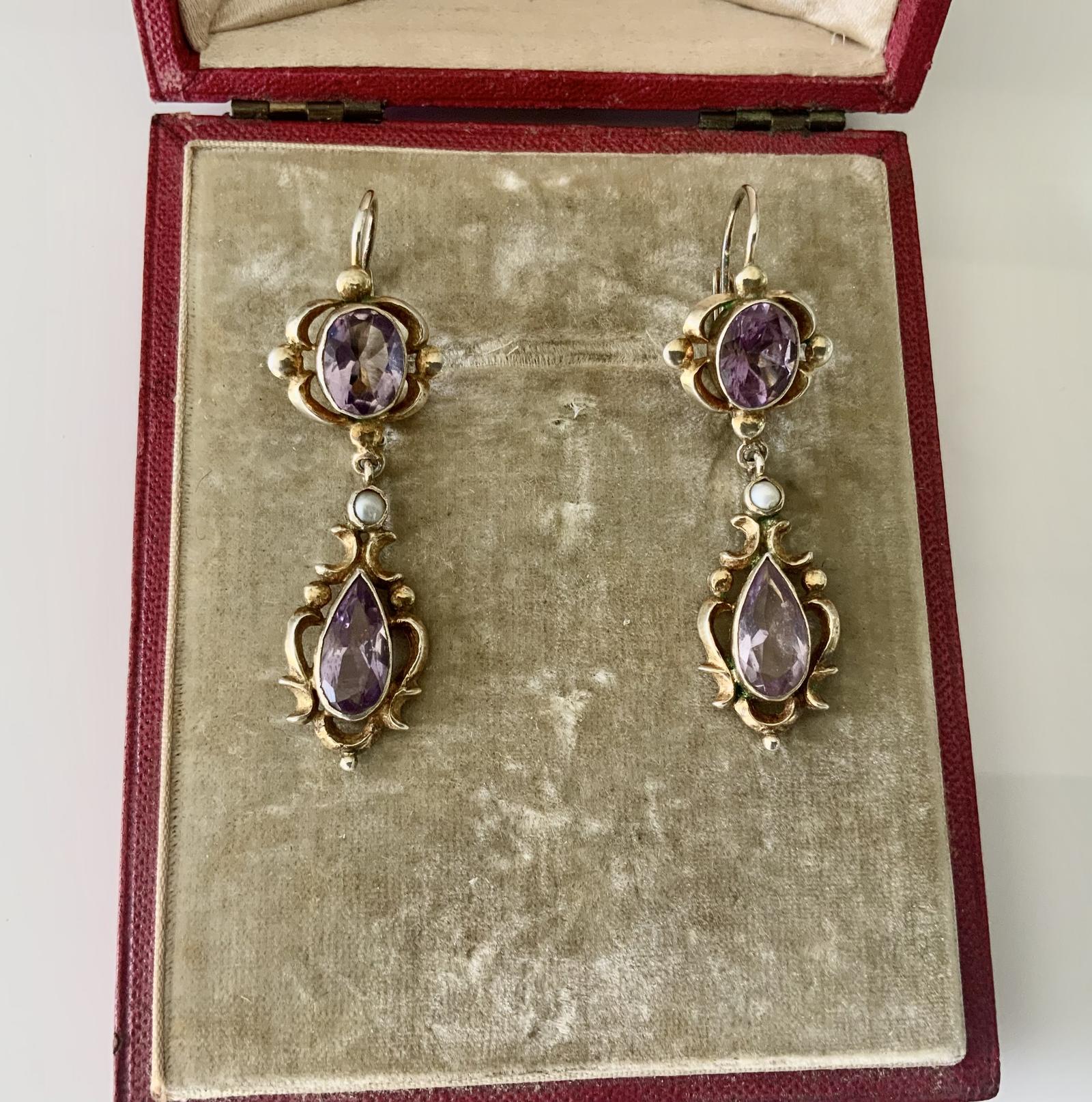 Victorian Style Silver & Amethyst Drop Earrings (1 of 7)
