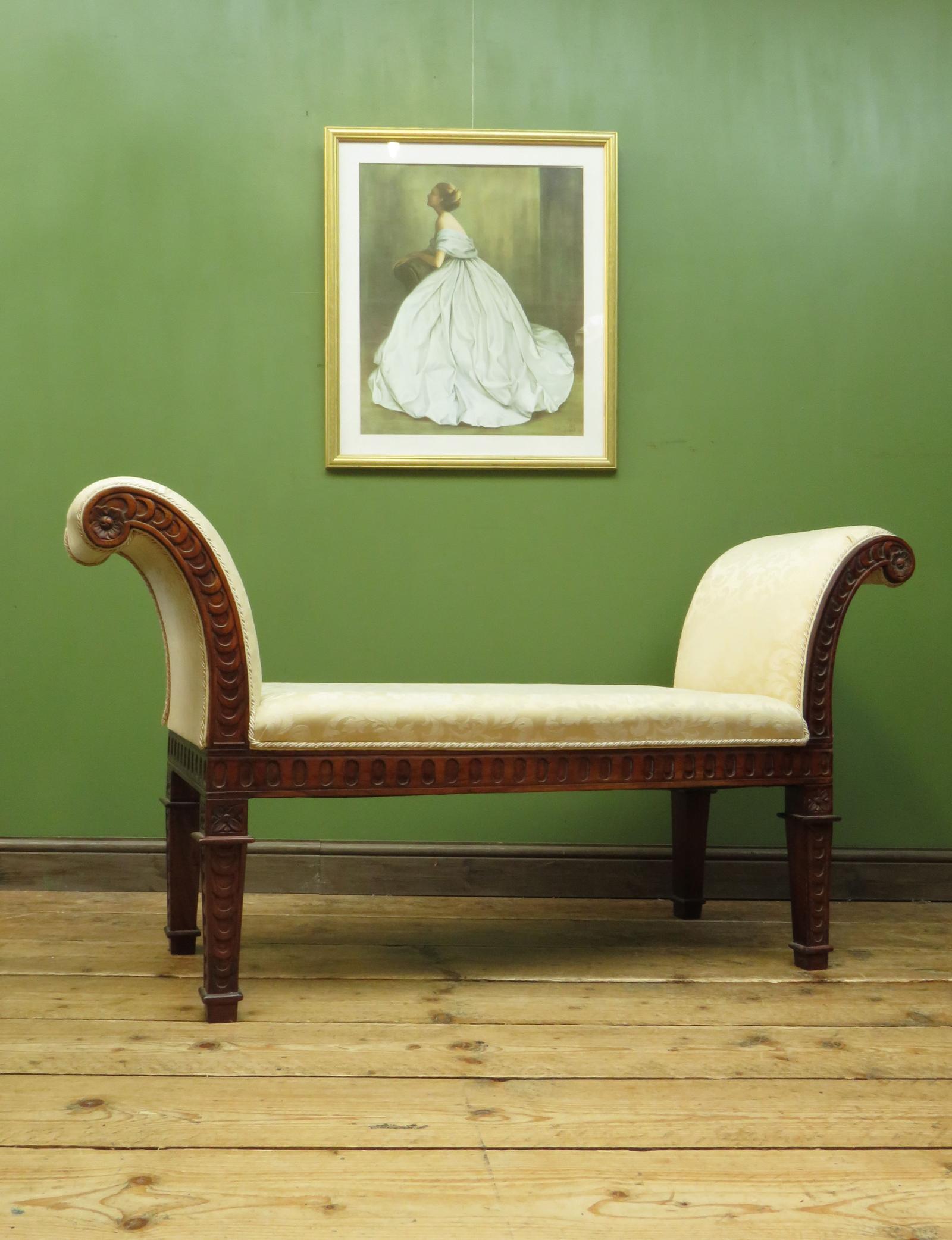 Victorian Style Window Seat with Ornate Frame & Upholstered Seat
