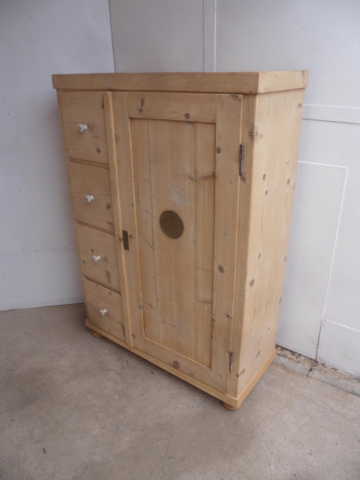 Victorian Tall Antique Pine 4 Drawer Kitchen Storage Cupboard to wax / paint