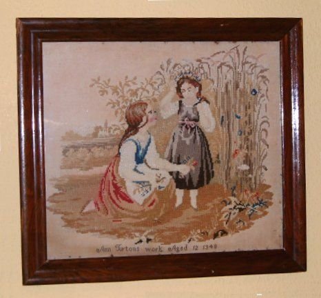 Victorian Tapestry Sampler in Rosewood Frame c.1848