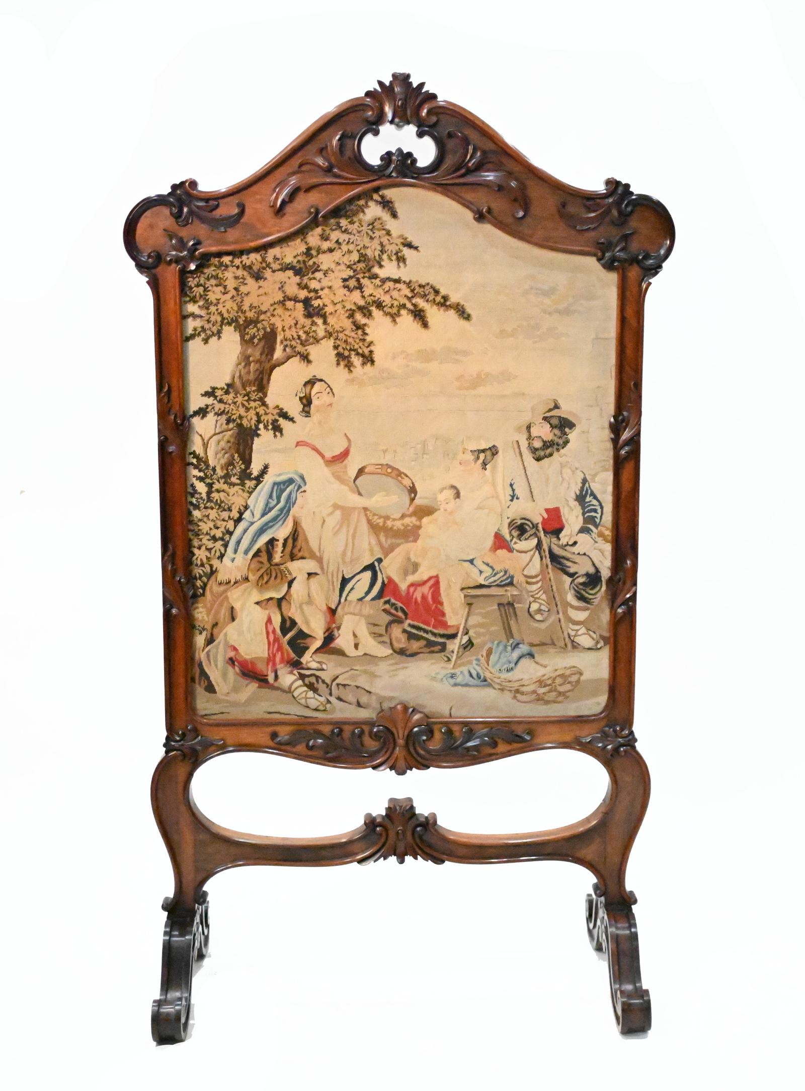 Victorian Tapestry Screen Needlepoint Hand Woven 1840 Pastoral