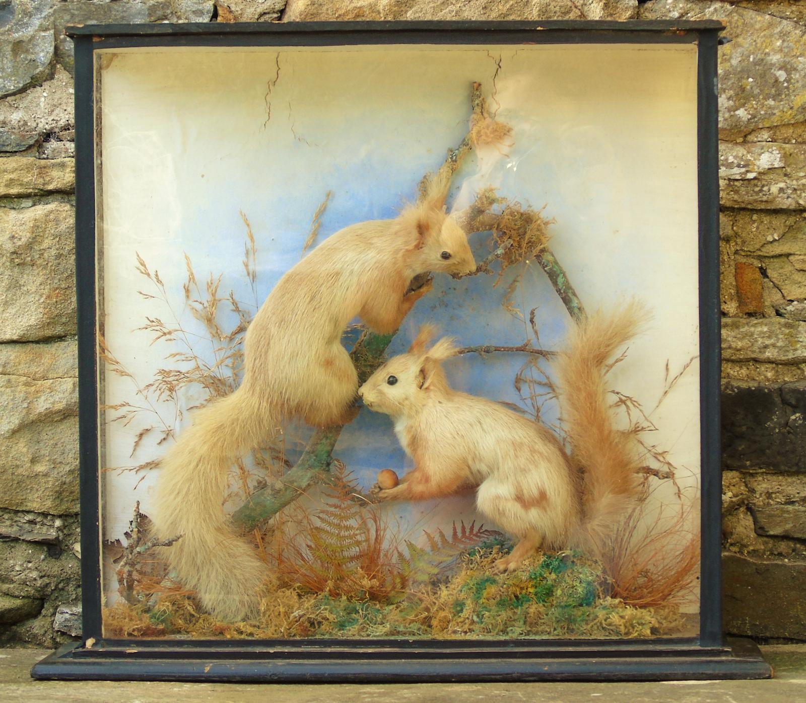 Victorian Taxidermy Pair of Red Squirrels Cased Specimen