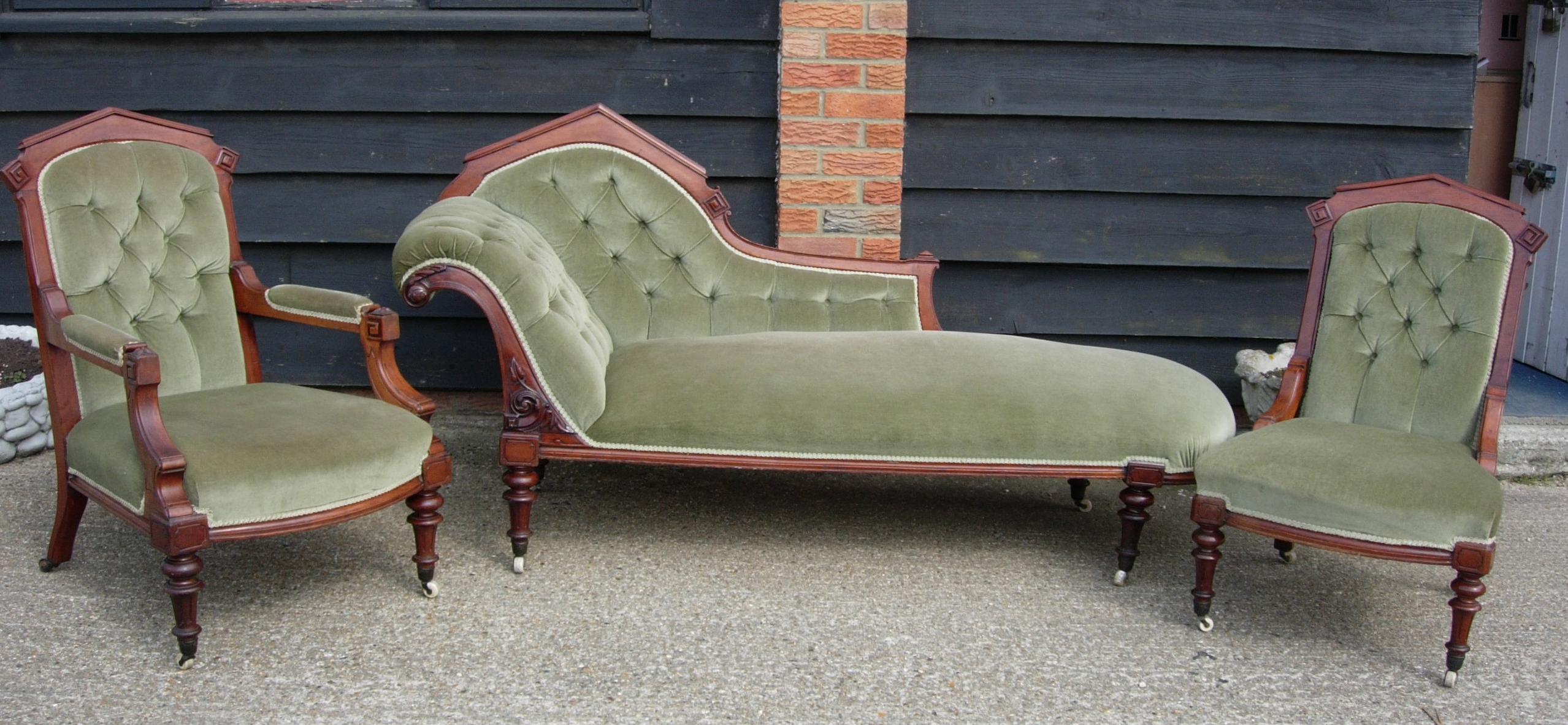 Victorian Three Piece Suite Comprising of Chaise / Gentlemans and Ladies Chair