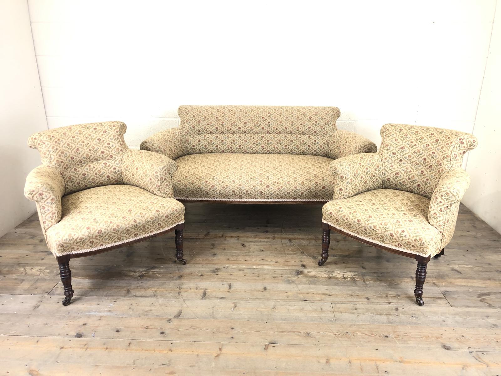 Victorian Three Piece Suite with Gold Floral Upholstery
