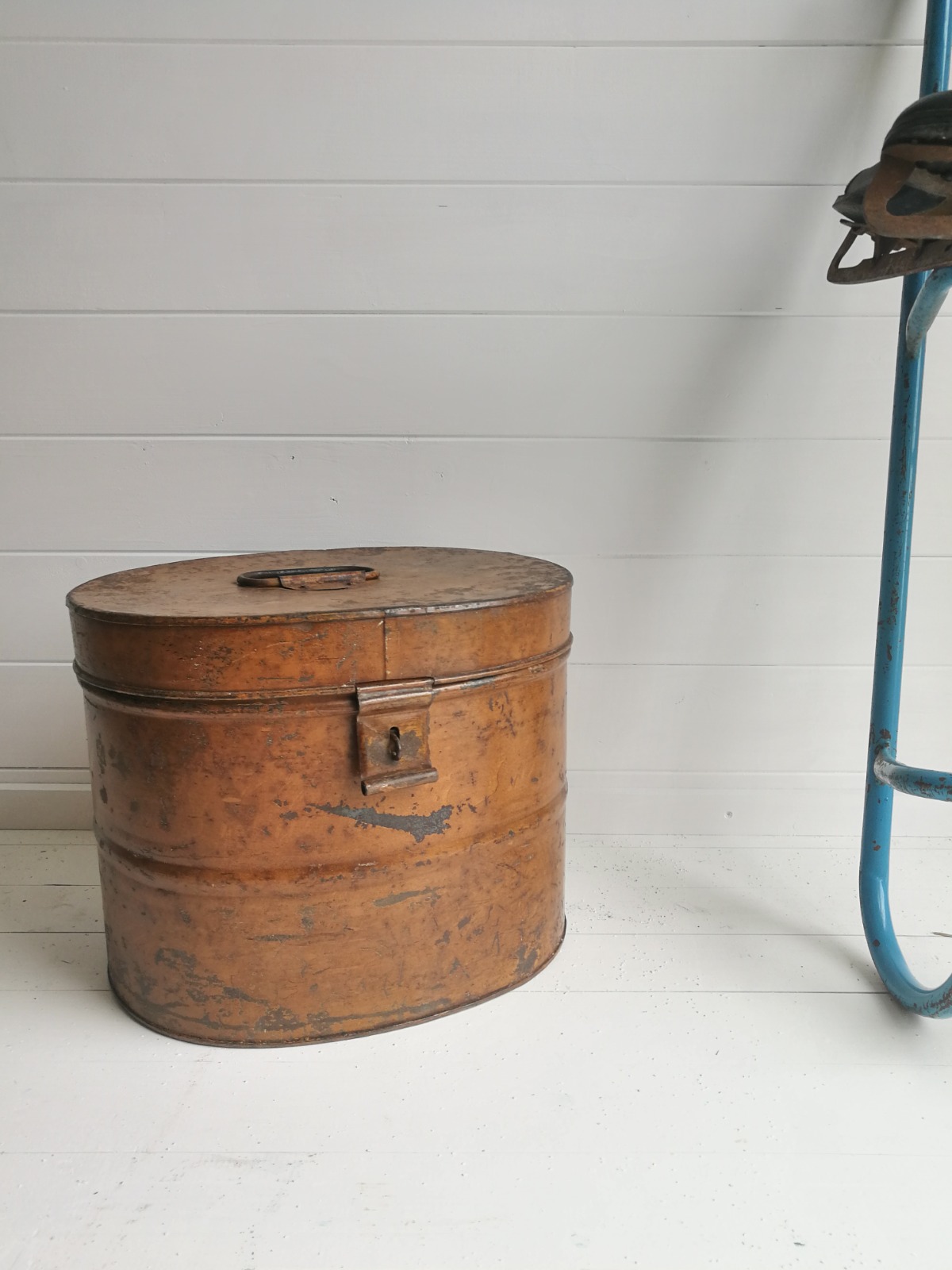Victorian Tin Hat Box Travelling Hatbox Luggage Trunk Painted Tin Antique Hat Box