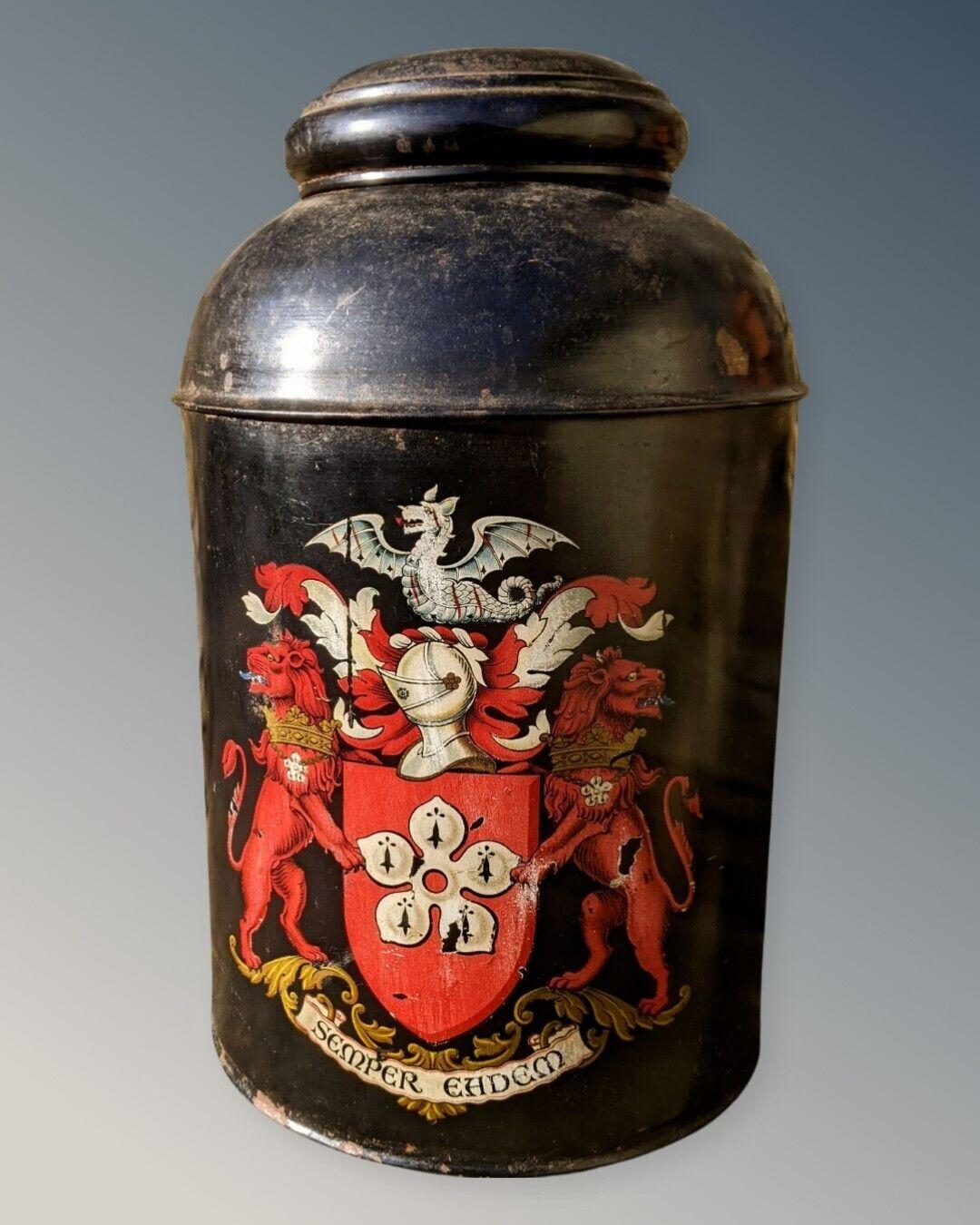 Victorian Toleware Cannister With Coat of Arms Crest (1 of 8)