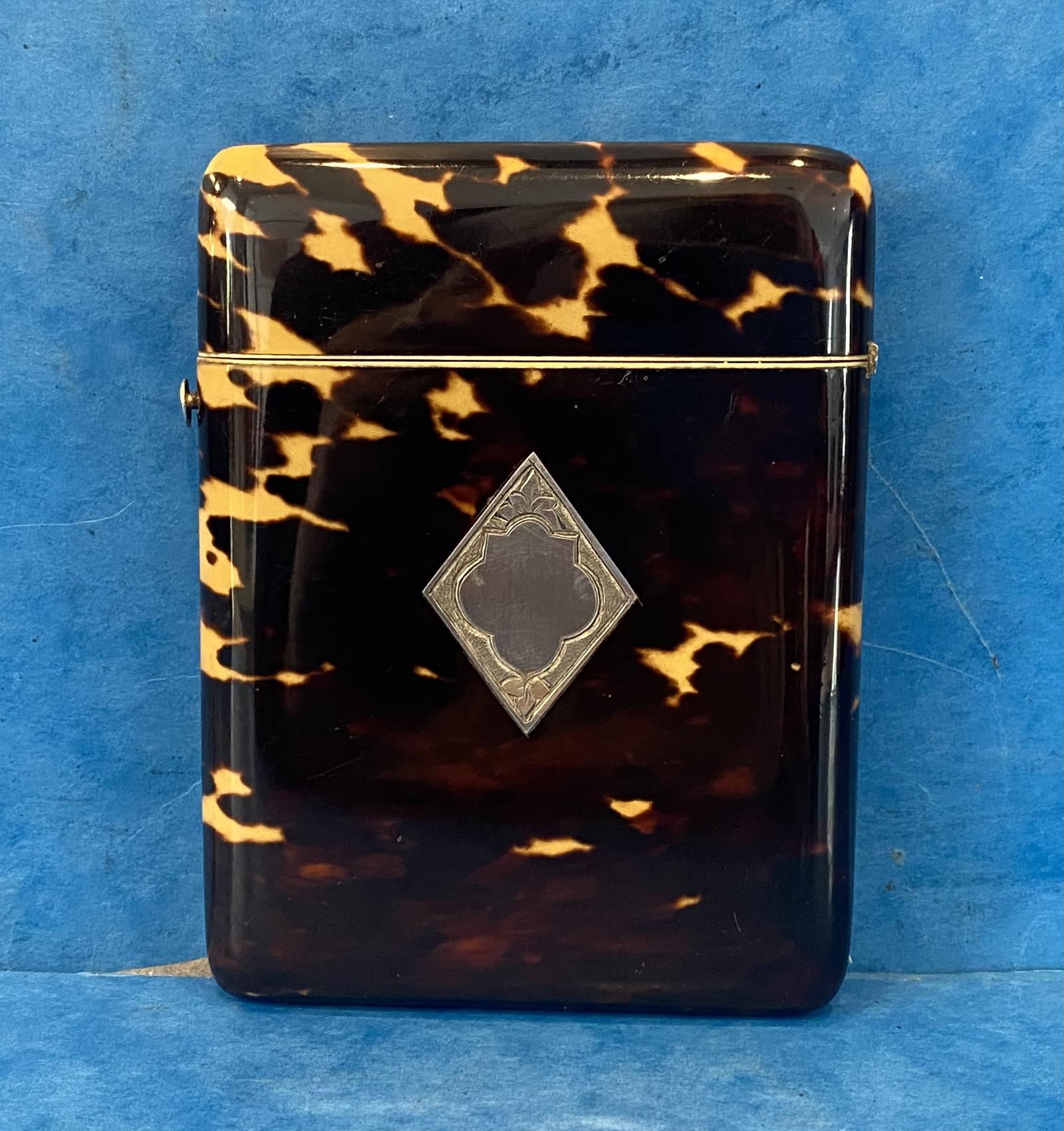 Victorian Tortoiseshell Card Case with Silver Inlay