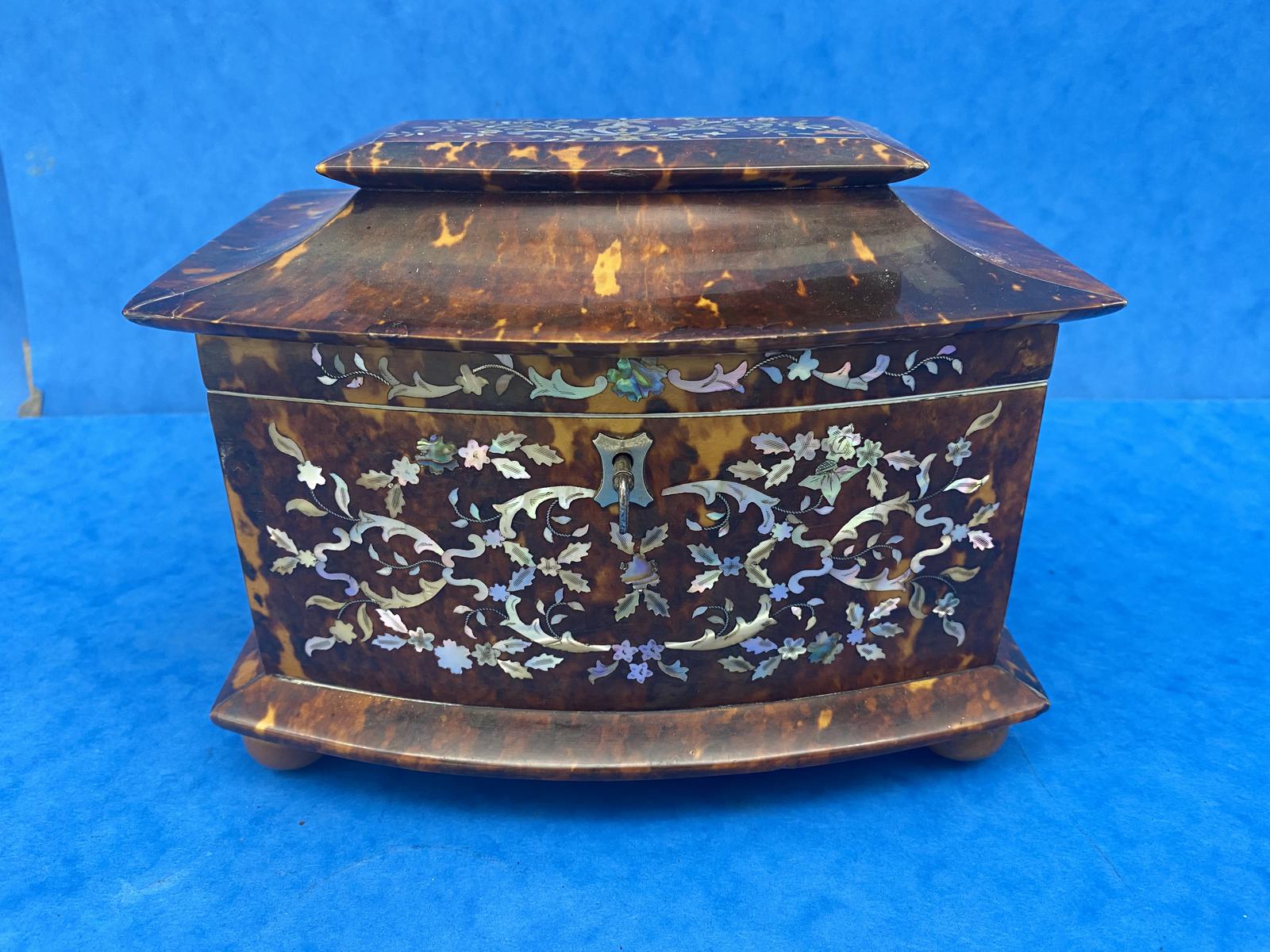 Victorian Tortoiseshell Tea Caddy with Mother of Pearl Inlay