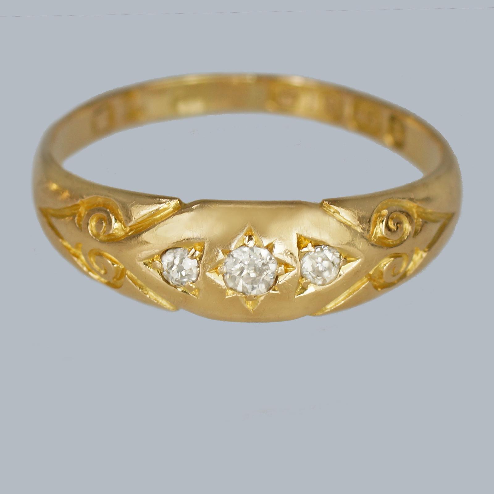 Victorian Trilogy Ring 18ct Gold Antique 3 Stone Ring Hallmarked Birmingham 1897