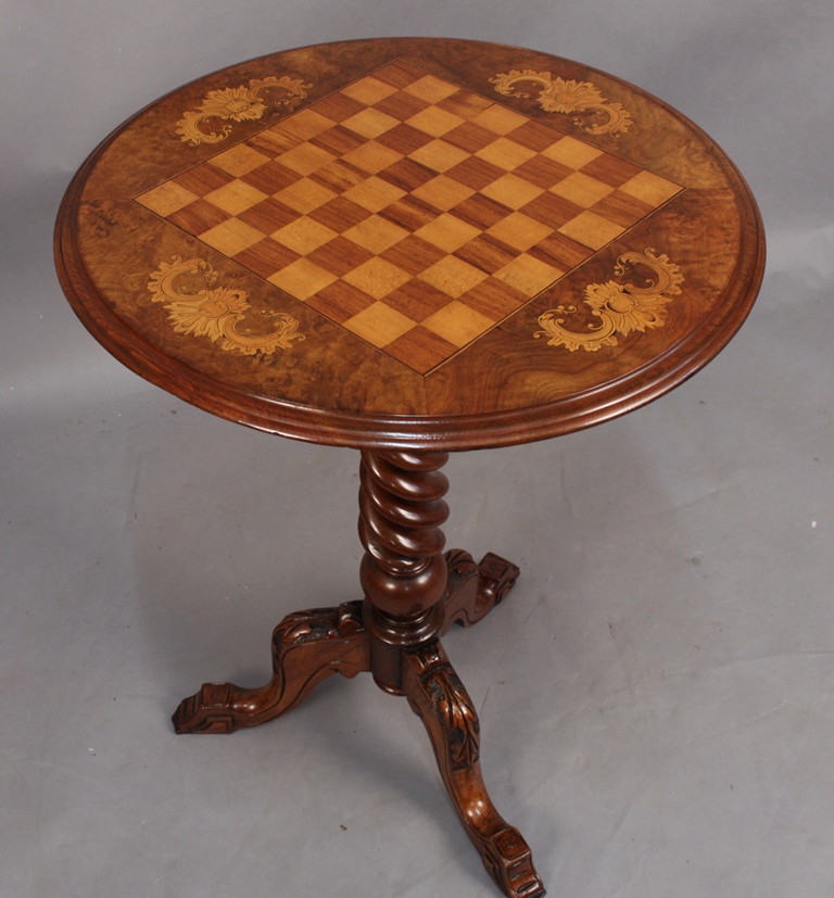 Victorian Tripod Table with Inlay and Chess Top c.1860
