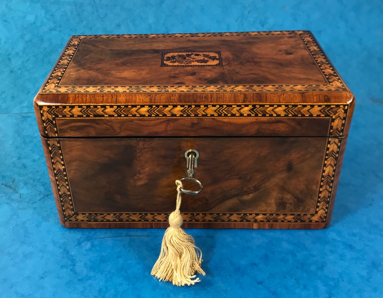 Victorian Tunbridge Ware Inlaid Walnut Stationary Box.