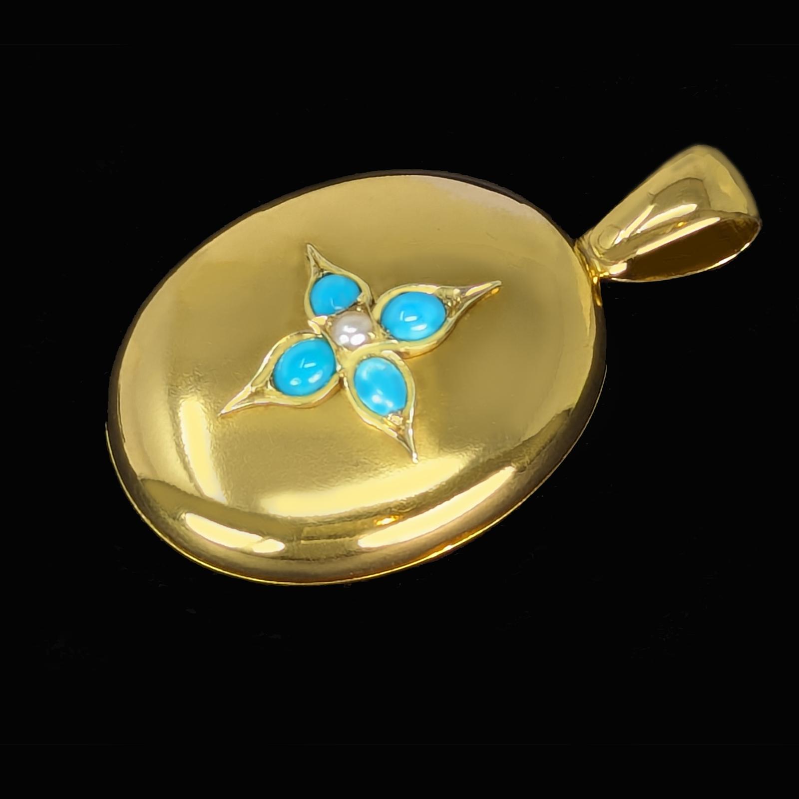 Victorian Turquoise and Pearl Locket 18ct Gold Star Motif Antique Photo Locket (1 of 8)