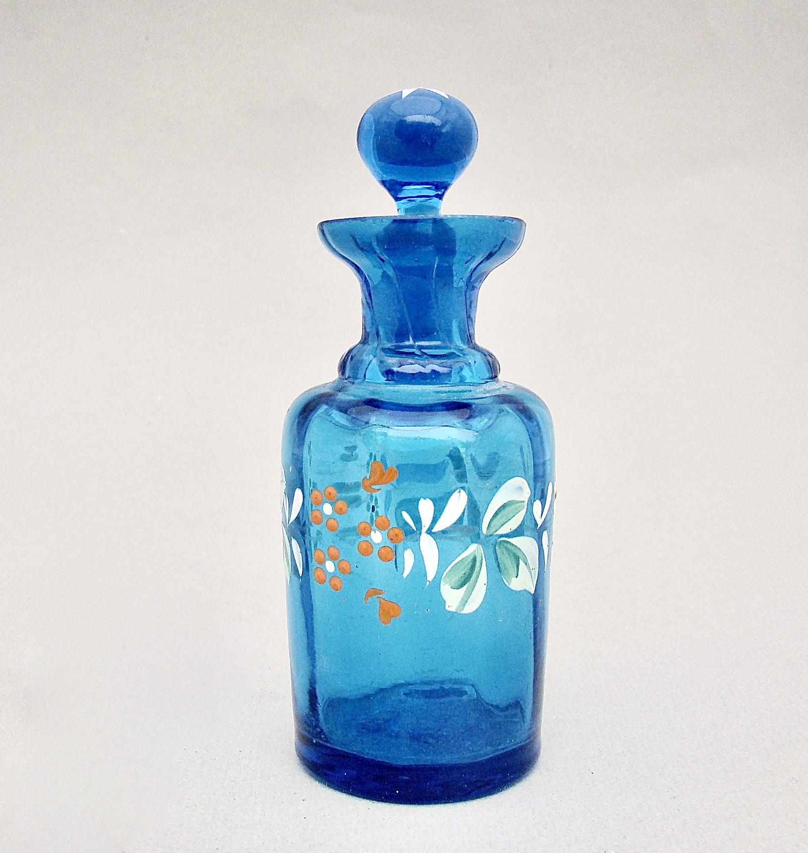 Victorian Turquoise Enamelled Glass Scent Bottle c.1890